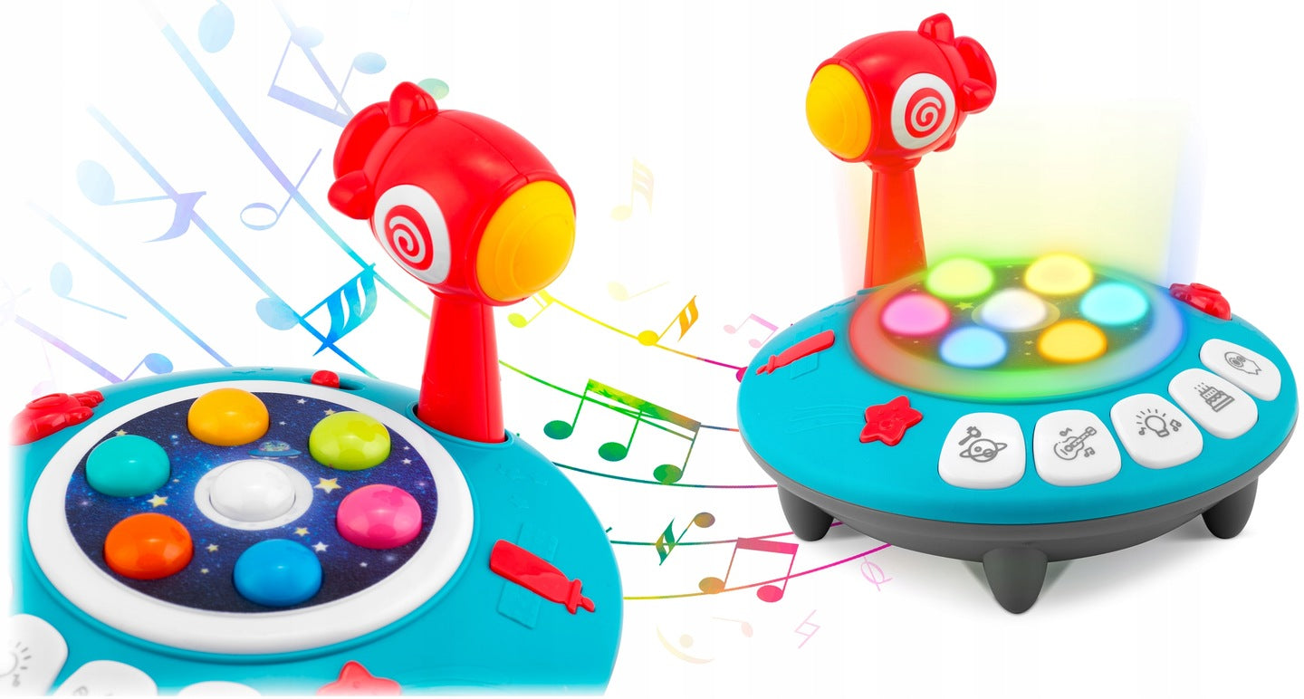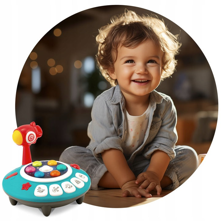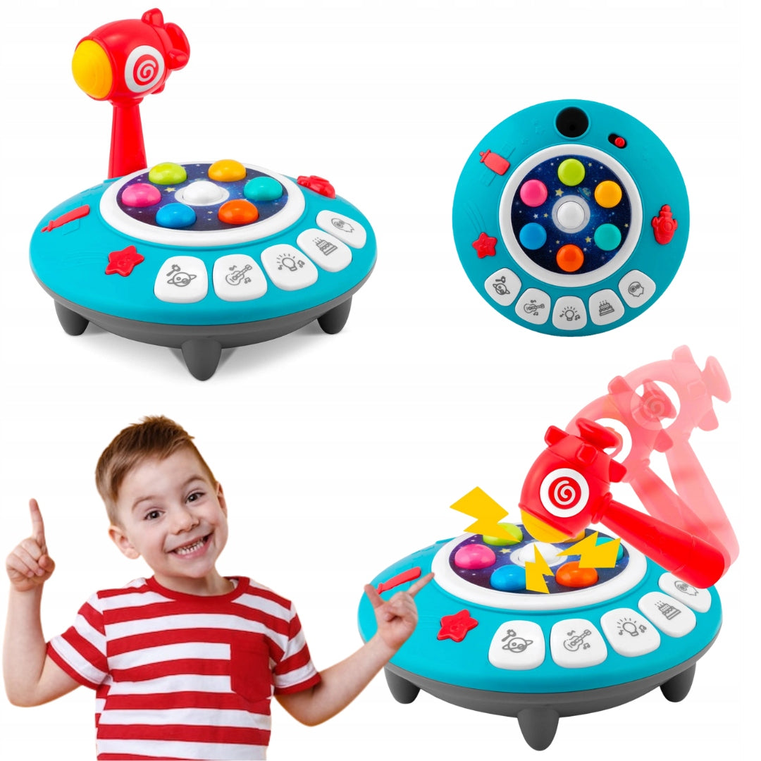 Jucarie copii Nava Spatiala OZN idealSTORE, cu Ciocan si Lumini, Melodii, Dezvolta Abilitati Motorii, Coordonarea Mana Ochi, Stimuleaza Imaginatia si Atentia, Butoane cu Lumini