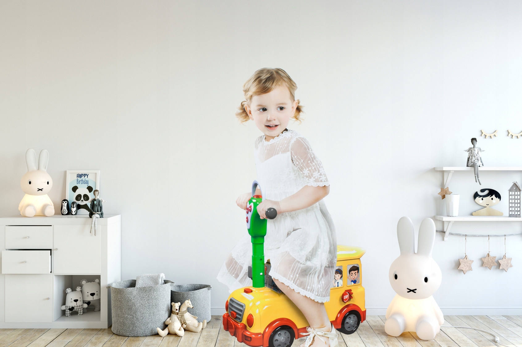 Copilul poate sta pe masina si sa impinga cu picioarele, de exemplu in jurul apartamentului.