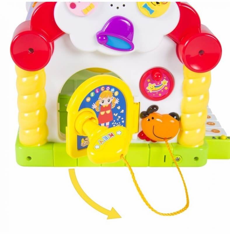 Copilul poate sa umple casuta cu formele prezente in set, sa deschida si sa inchida usa, sa isi testeze abilitatile matematice, dar si sa faca alte activitati distractive. Fiecare fata a jucariei vine cu un alt tip de activitate, cel mic cu siguranta nu se va plictisi de ea.