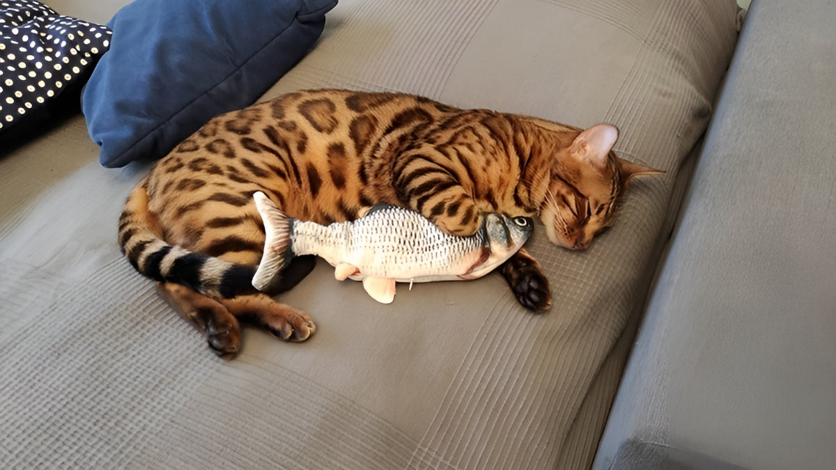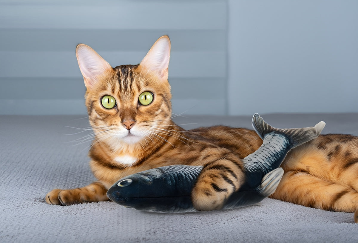 Pestele saritor Jumping Fish IdealStore de plus 3D declanseaza instinctul natural de vanatoare al pisicii. Aspectul, forma si mecanica de functionare imita miscarea unui peste aderarat. Pestele reactioneaza cu miscare de fiecare data cand pisica il atinge cu laba. Daca pisoiul nu mai atinge pestele - se opreste din miscare dupa un timp (pana cand este atins din nou).