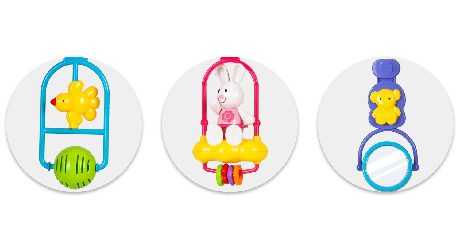 Jucariile au multe parti mobile si culori indraznete care atrag atentia copilului.