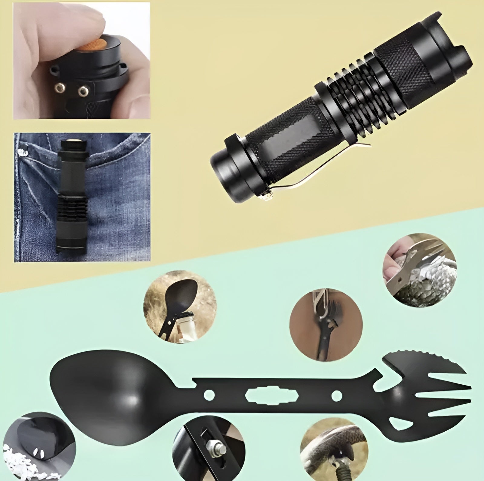 Acest set este potrivit pentru o gama larga de activitati, de la calatorii de agrement si pana la antrenamente militare sau tabere de supravietuire. Este perfect si pentru cei care isi doresc sa ofere un cadou util si practic unui prieten sau unui membru al familiei lor.