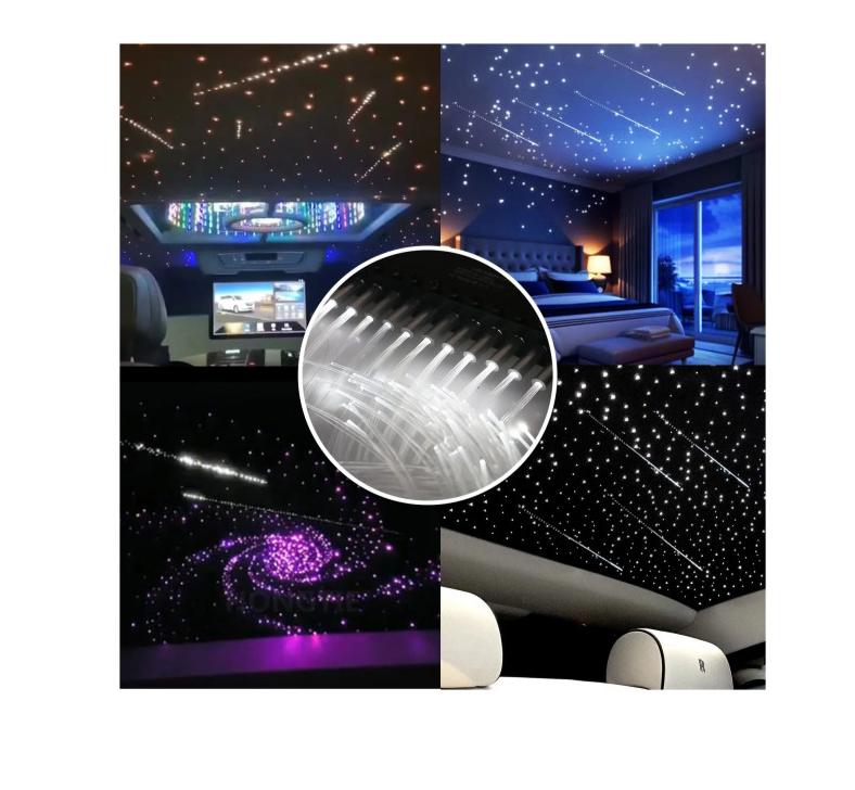Kit Fibra Optica LED RGB+W idealSTORE Plafon Instelat cu Efect Meteorit 760 fire ,3m, Tensiune 12V, Control Wireless, Aplicatie IOS si Android, Bluetooth, Multi-color