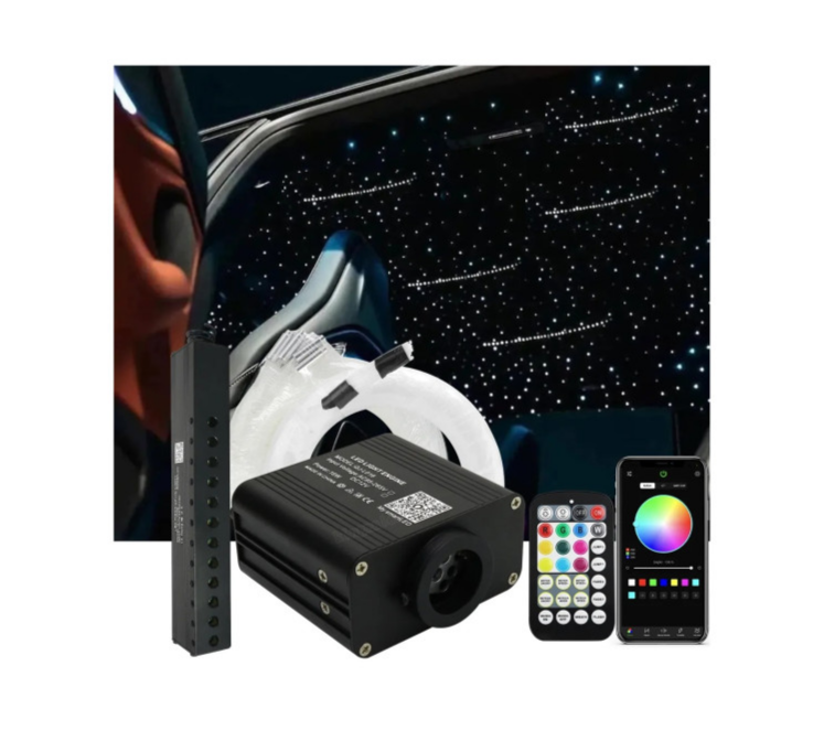 Kit Fibra Optica LED RGB+W idealSTORE Plafon Instelat cu Efect Meteorit 760 fire,3m, Tensiune 12V, Control Wireless, Aplicatie IOS si Android, Bluetooth, Multi-color