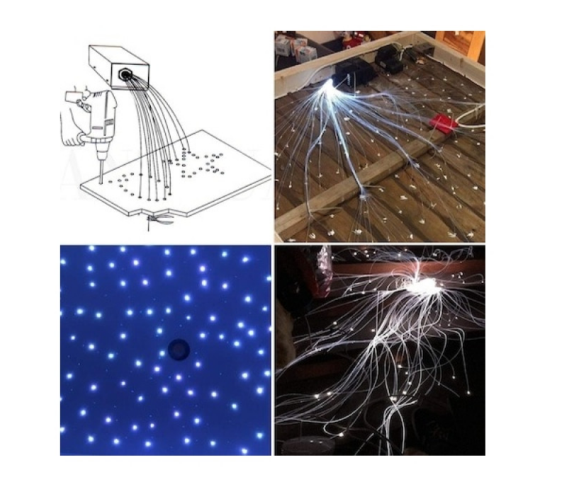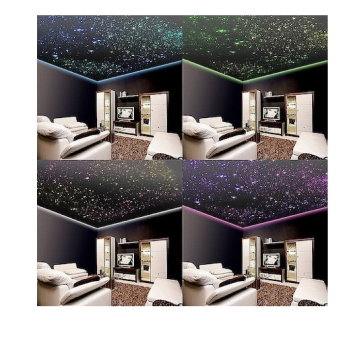 Kit Fibra Optica Plafon idealSTORE Instelat LED RGB cu Telecomanda si Sursa de Alimentare 0,75mm, 295 Fire 3 Metri 12V, Control Wireless, Bluetooth, Aplicatie IOS si Android