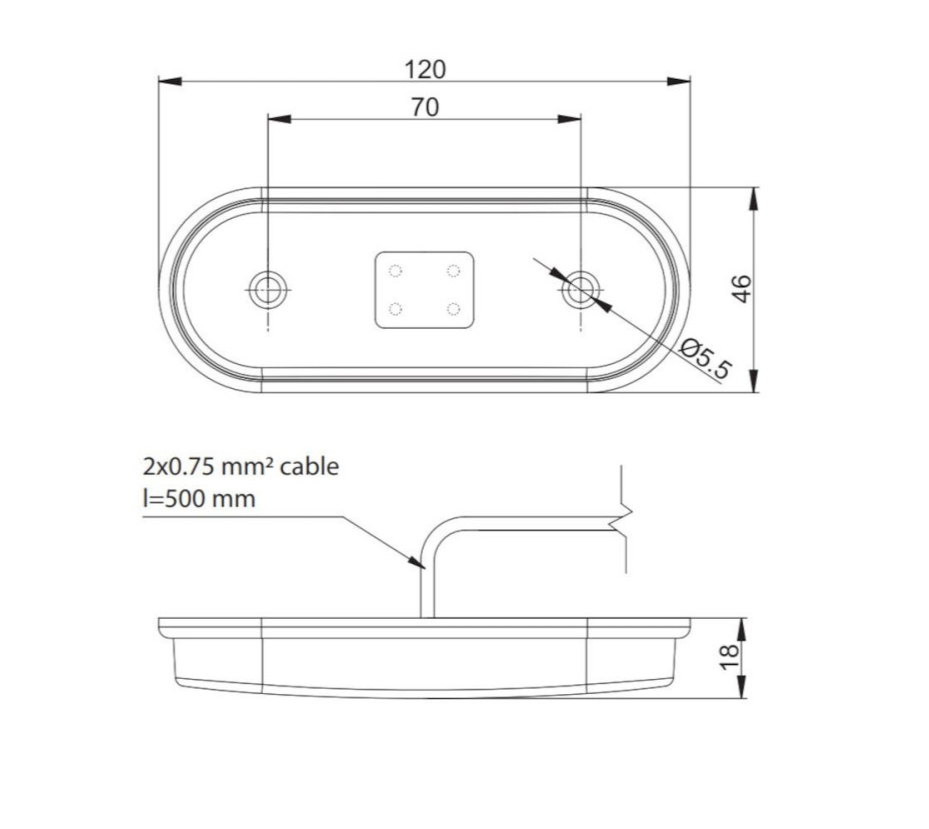 Lampa Gabarit idealSTORE, Dimensiuni 118 x 46, LED, Galbena, 12-36V, Iluminare cu 4 LED-uri, Distanta intre gauri 70mm