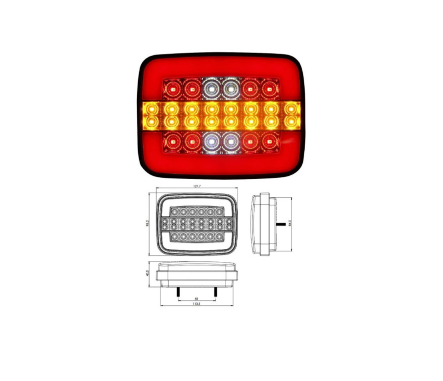 Lampa LED idealSTORE cu Semnalizare Dinamica 4 Functii, Semnalizare, Pozitie, Stop Frana, Marsarier, Tensiune 12V, Dimensiuni 12,5 x 9,5 x 3,5 cm, Distanta intre suruburi pentru fixare - 6 cm