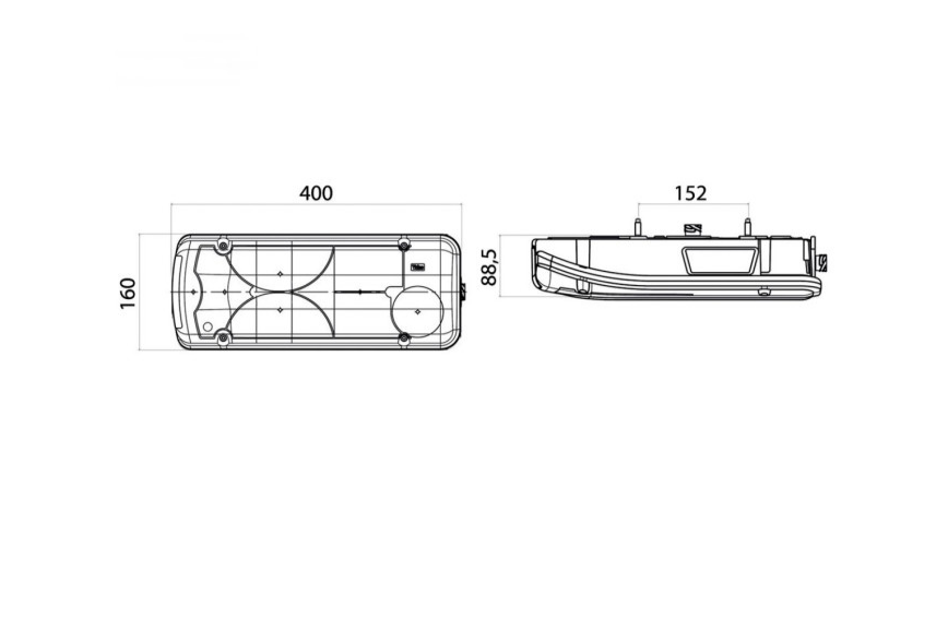 Lampa Stop Camion Remorca idealSTORE cu Mufa in Mijloc 5 Functii, Semnalizare, Pozitie, Stop Frana, Marsarier, Ceata, Dimensiuni 400 X 160 X 88,5 mm, Dreapta