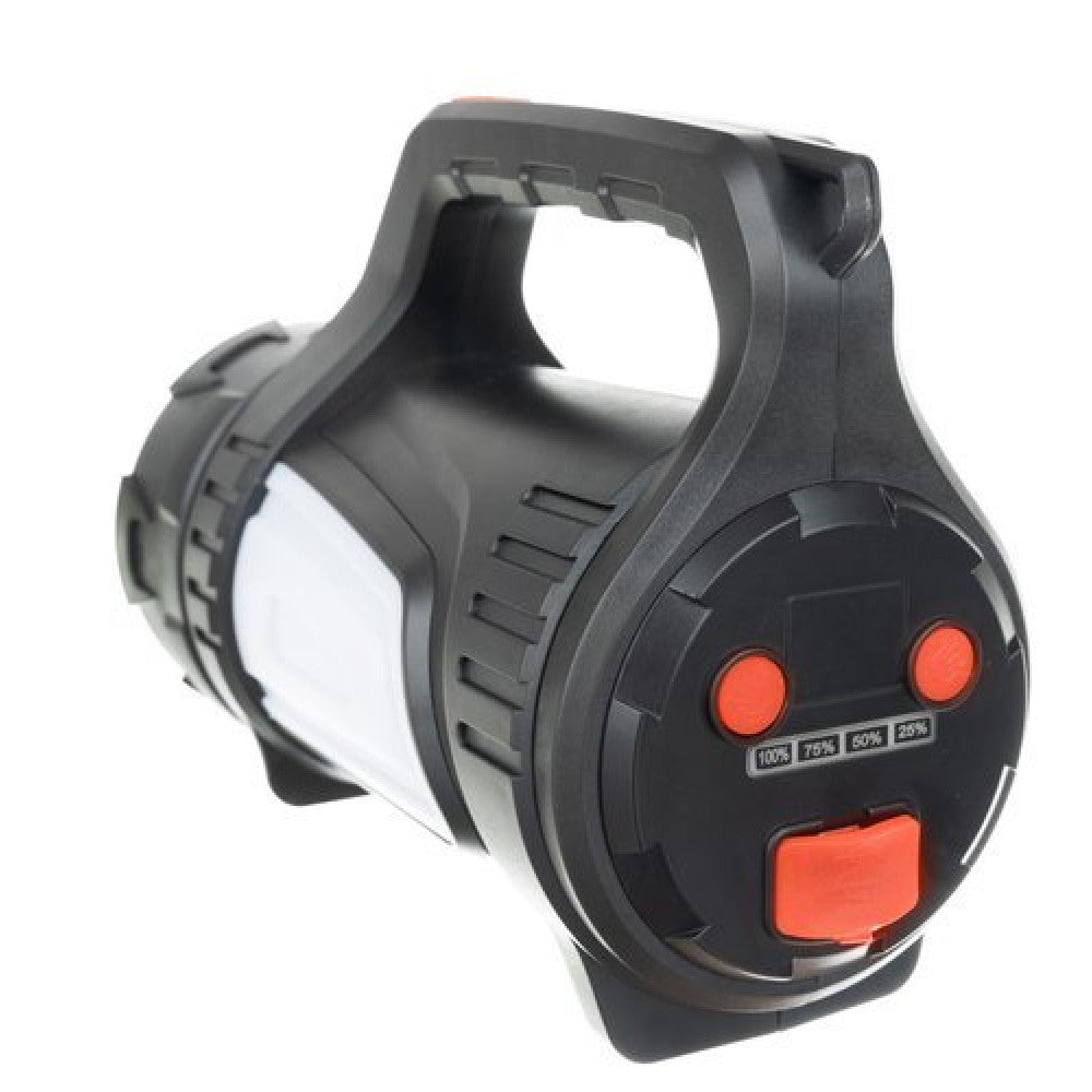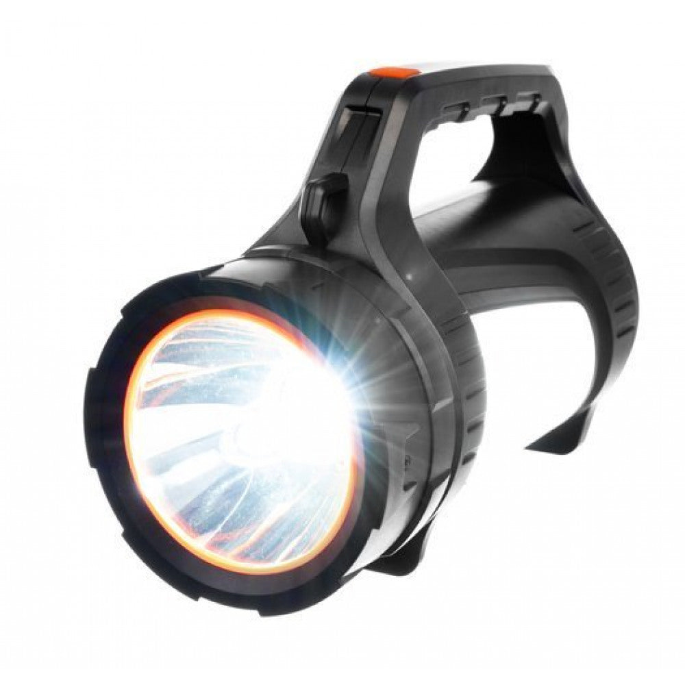 Lanterna LED idealSTORE cu Power Bank 8000mAh, Raza iluminare 500m, 1200 lumeni, Carcasa Ranforsata, Rezistenta la Apa si Praf, 7 Moduri de iluminare, Lumina Rosie de Alarma, iluminare Laterala, Curea de Umar