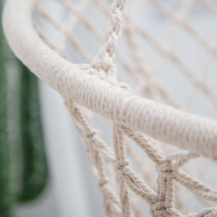 Leaganul suspendat Texty este fabricat dintr-un material respirabil placut la atingere, care este, de asemenea, durabil si rezistent la abraziune. In plus, franghiile tesute foarte gros garanteaza ca leaganul va va servi multe sezoane.
