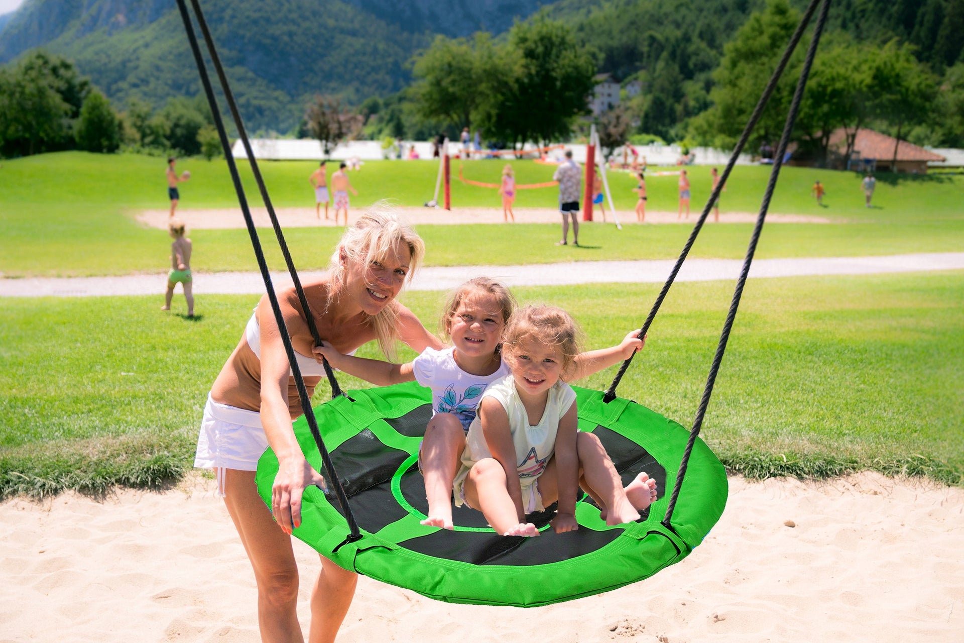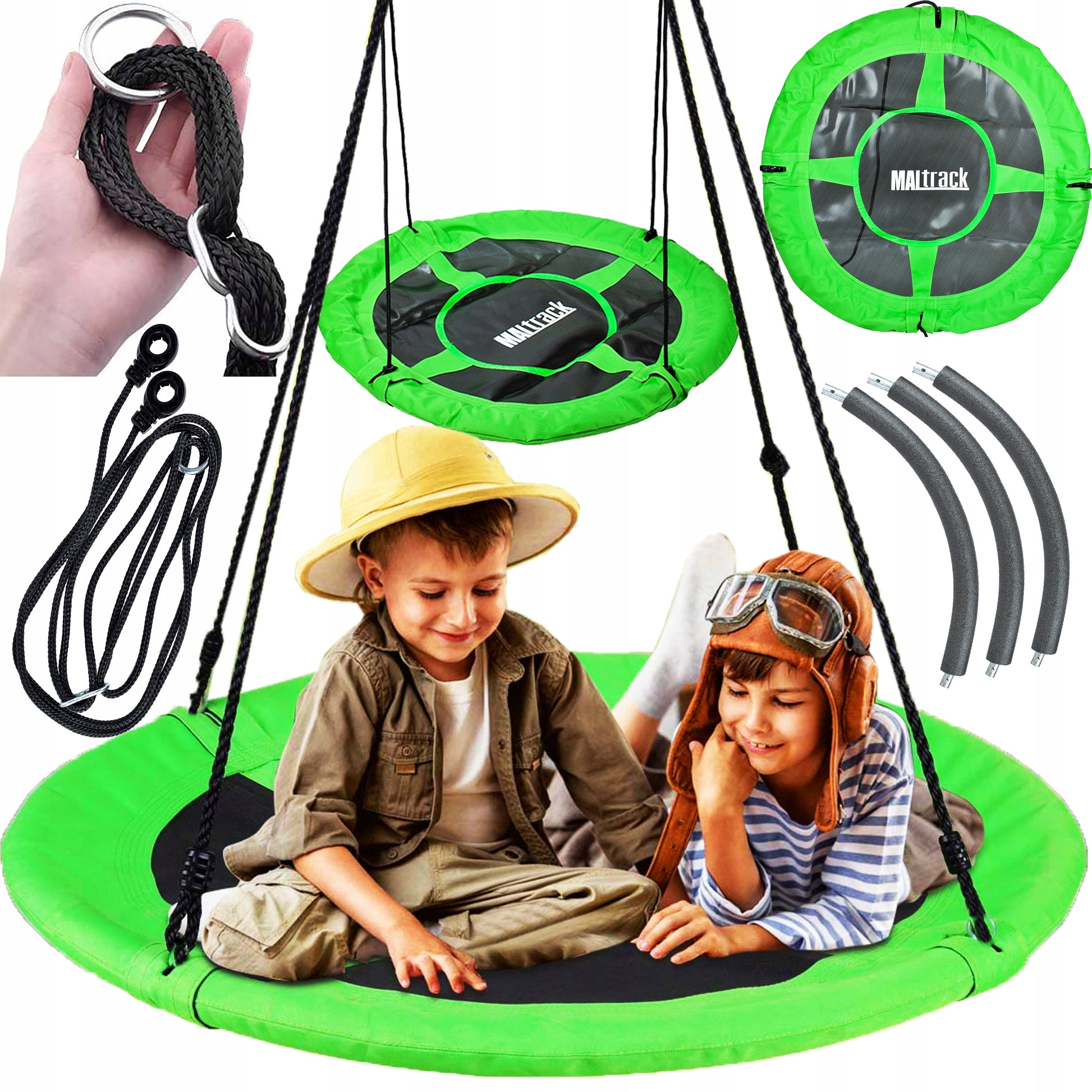 Se distinge de leaganele traditionale prin faptul ca, datorita diametrului scaunului de pana la 116 cm, poate fi ocupat de mai multe persoane la un moment dat.