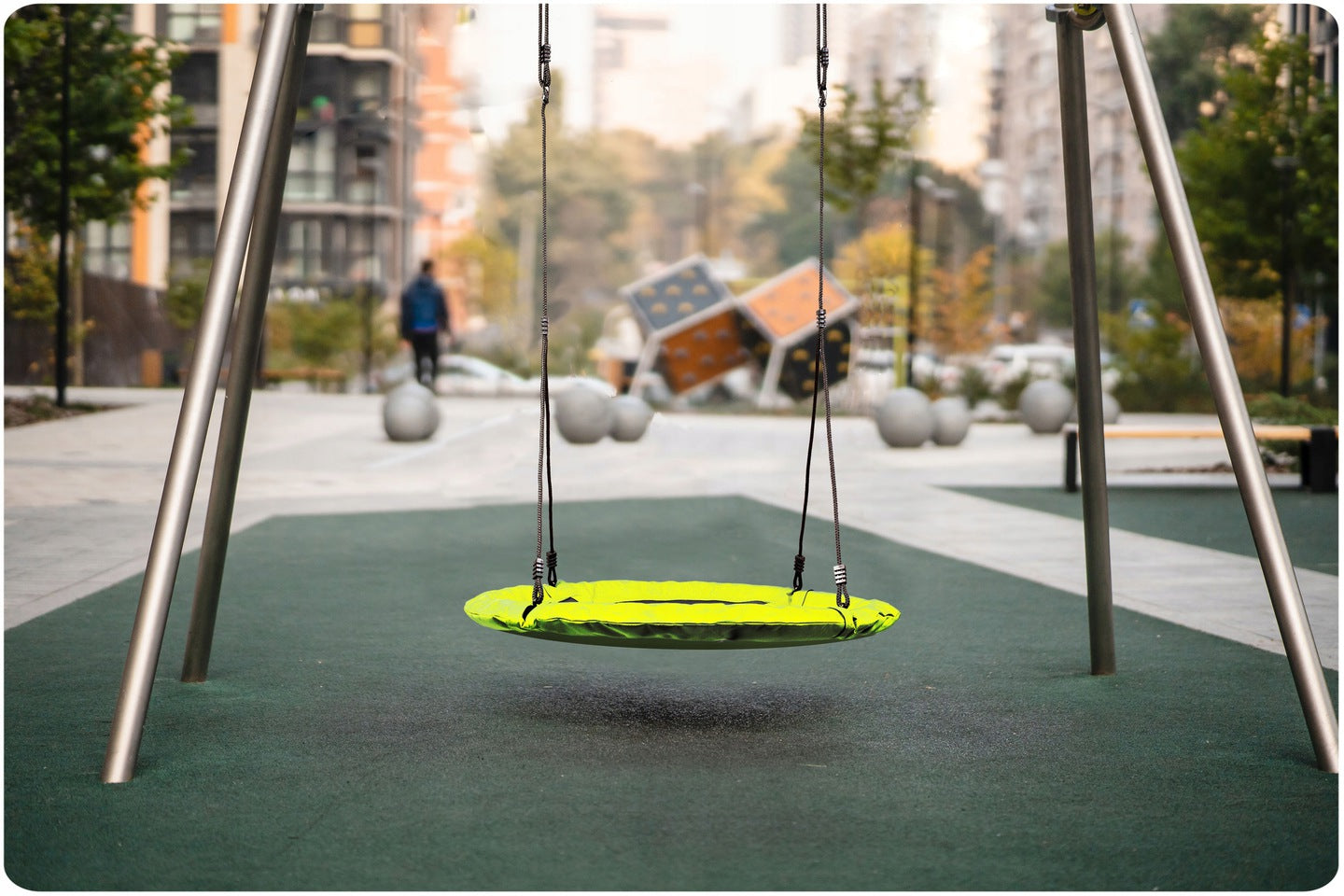 Se distinge de leaganele traditionale prin faptul ca, datorita diametrului scaunului de pana la 116 cm, poate fi ocupat de mai multe persoane la un moment dat.