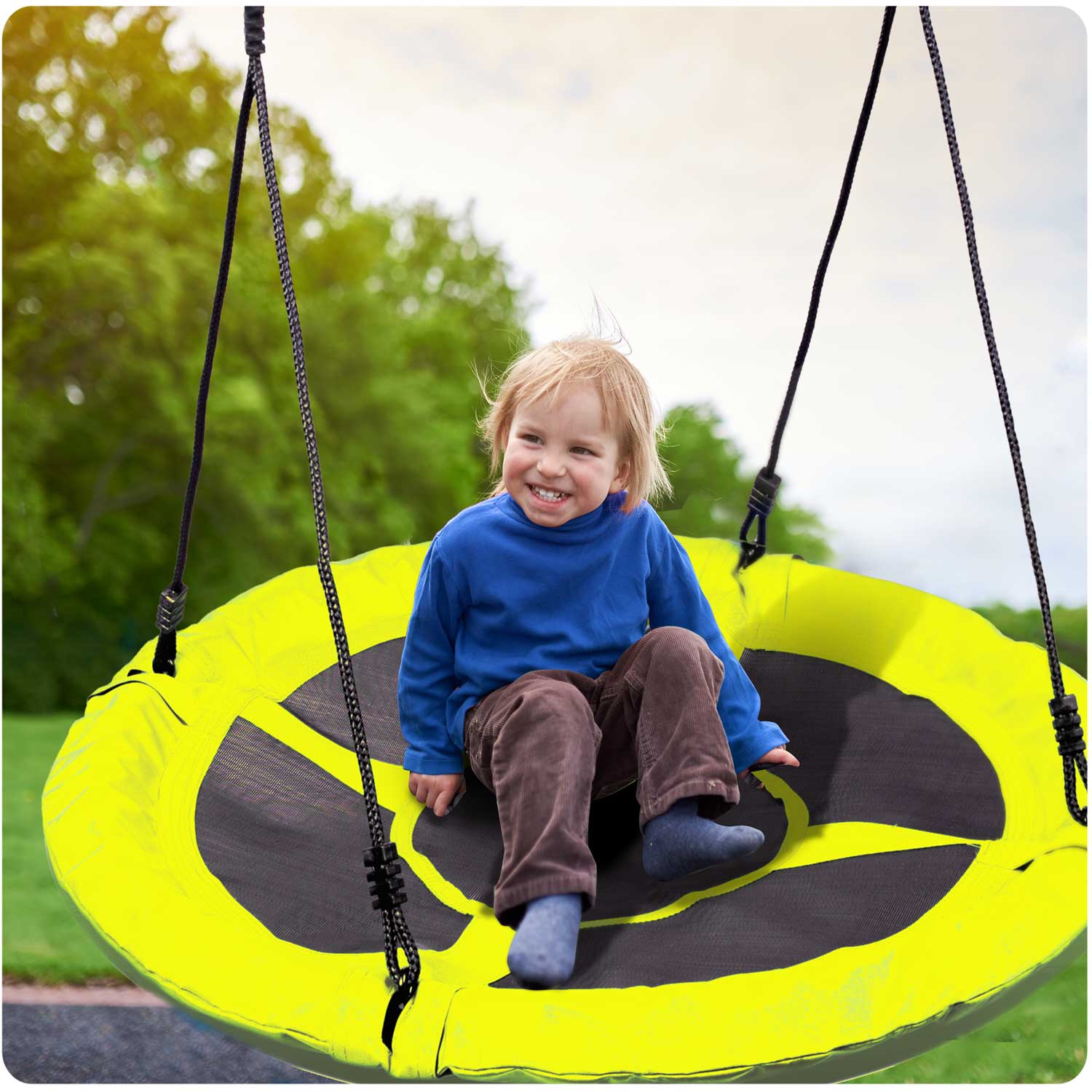 Leagan pentru copii profesional idealStore Stork's Nest, tip Cuib, Sarcina maxima 150 Kg, Diametru 95 cm, Cadru din Otel, Recomandat pentru Copii, Corzi de Reglabile, Galben