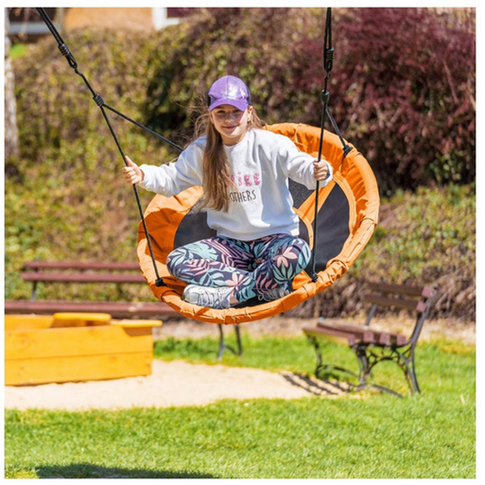 Leagan pentru copii profesional idealStore Stork's Nest, tip Cuib, Sarcina maxima 150 Kg, Diametru 95 cm, Cadru Otel, Portocaliu