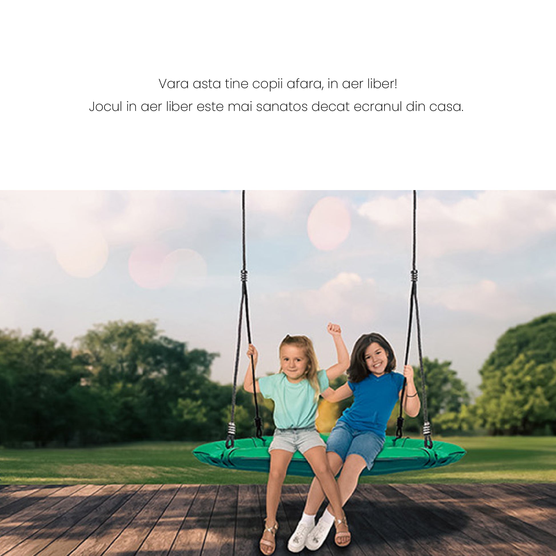 Leagan pentru copii profesional idealStore Stork's Nest, tip Cuib, Sarcina maxima 150 Kg, Diametru 95 cm, Cadru Otel, Verde