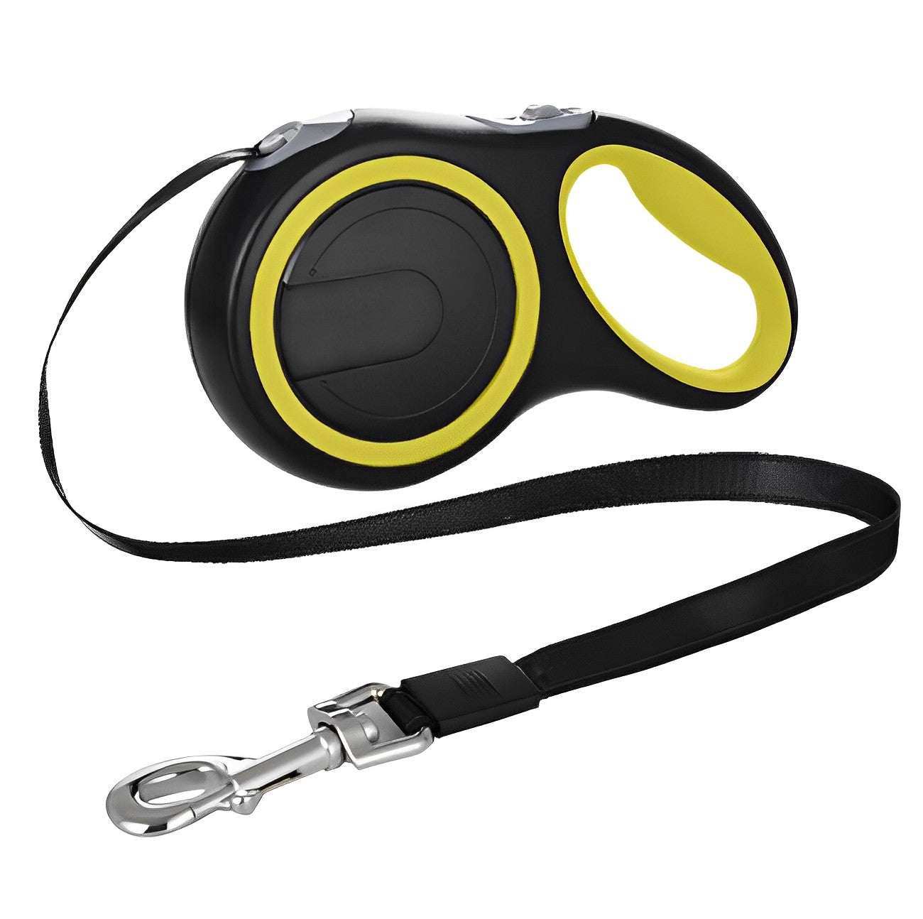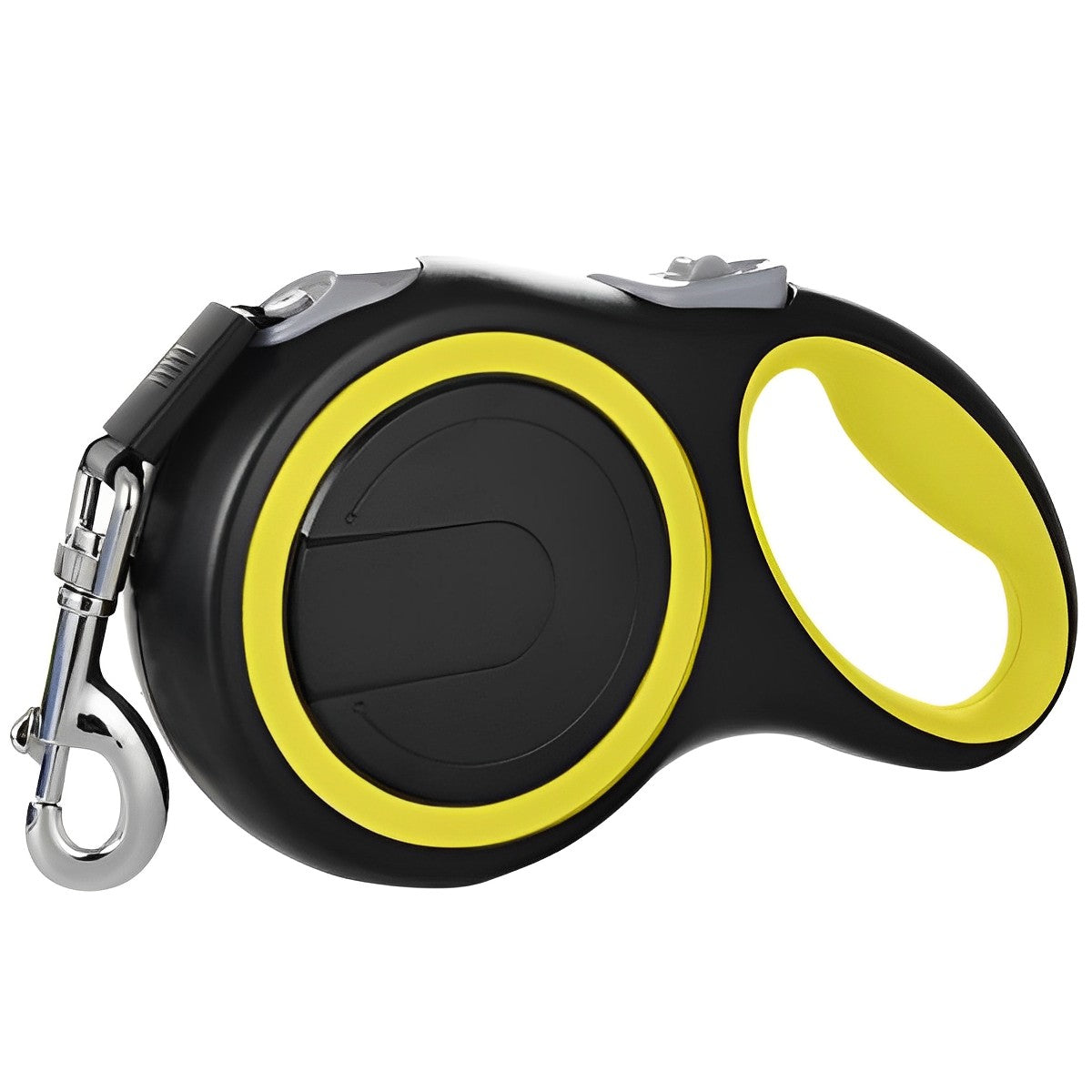 Lesa Retractabila Pentru Caini IdealStore, Dispozitiv de Blocare, Lungime 8 metri, Dimensiune: 21 x 11 x 4cm, Greutatea Maxima a Cainelui 50kg, Culoare Negru-Galben