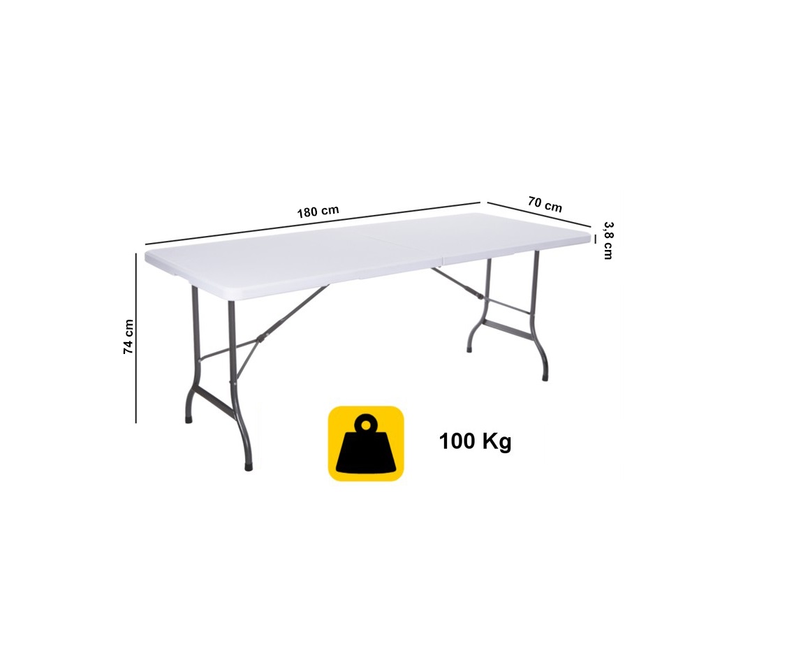 Masa WHITE DELUXE este solutia perfecta pentru toate evenimentele in aer liber! Constructia din otel cu dimensiunile de 180 x 74x 70 cm asigura un confort sporit in utilizare. Datorita posibilitatii de pliere rapida a mesei intr-o valiza cu maner , transportul sau depozitarea nu vor cauza probleme.