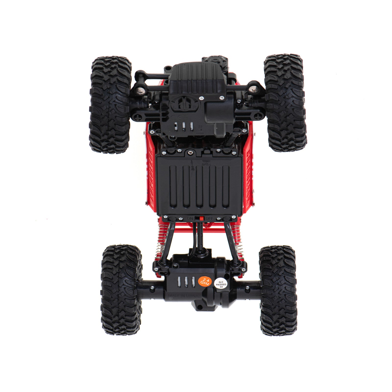 Masinuta cu Telecomanda Rock Through idealSTORE, Accesorizat cu 2 Motoare Puternice, Roti mari de Teren, 4X4, Suspensii, Viteza ~10 km/h, Raza de Actiune 50 m, Scara 1:18, GHz 2,4 Ofera multe Ore De Distractie, Rosu- Negru