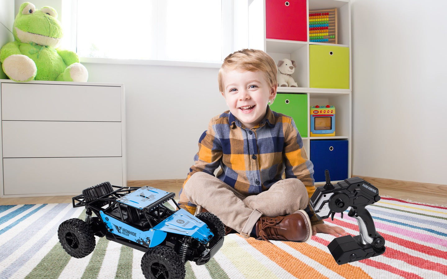 Masinuta Cu Telecomanda si Suspensii Metal OFFROAD, Scara 1.16, Marime 28 x 18.5 x 12 cm, Manevrabilitate Ridicata, Cauciucuri Rezistente, Telecomanda Usor de Folosit, Viteza Maxima 20 km/h, Culoare Albastra