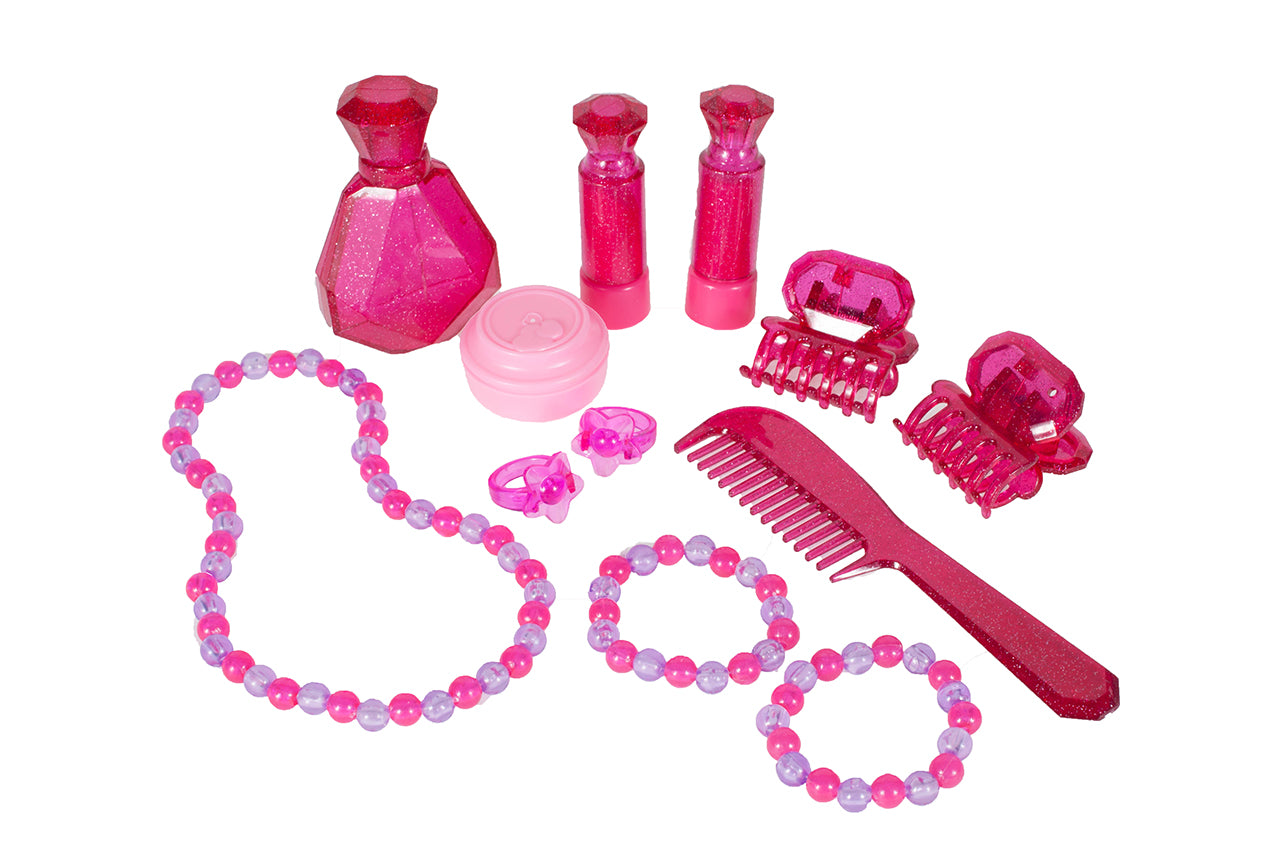 O masa frumoasa, mare, contine o multime de accesorii care cu siguranta vor fi pe placul fiecarei tinere care viseaza sa fie o printesa frumoasa inca de dimineata.