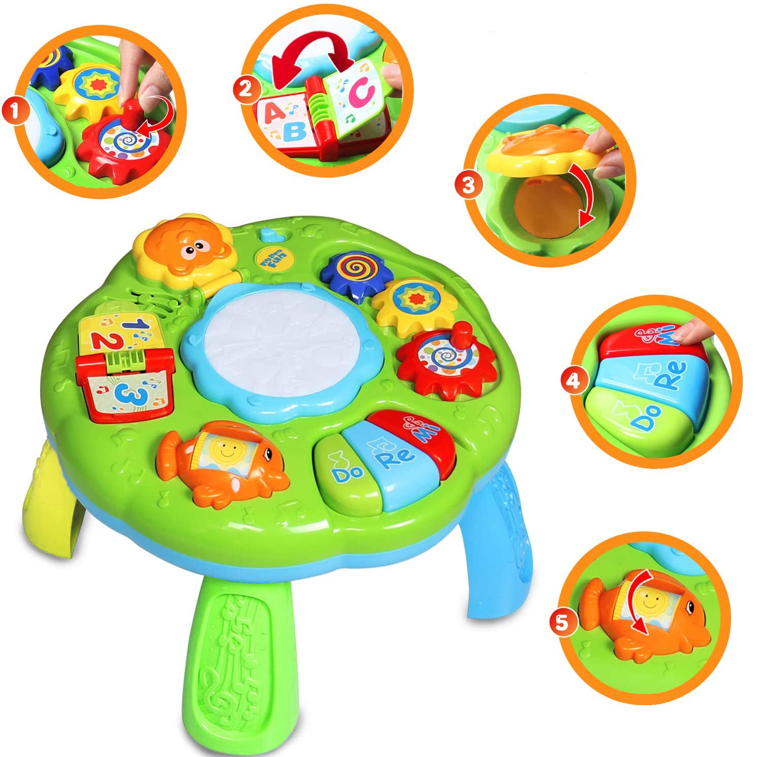 Masuta Interactiva 6 in 1 pentru Bebelusi, Include Unelte Rotative care reda Muzica, Taste Muzicale, Accesorizata cu Sunete si Lumini, Stimuleaza Dezvoltarea Vizuala si Motorie