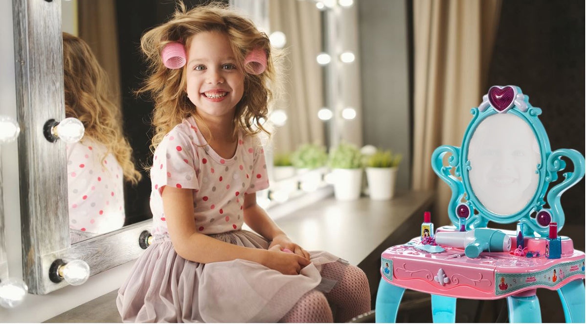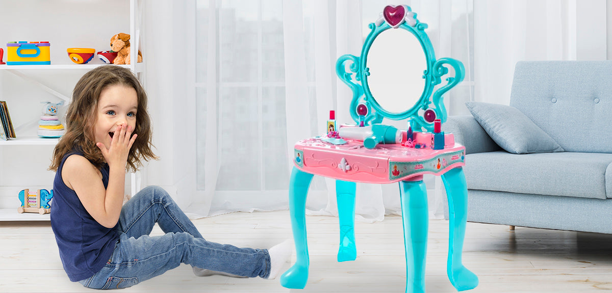 Partea superioara a mesei de toaleta le va gazdui pe toate, facilitand astfel pastrarea ordinii dupa terminarea distractiei.