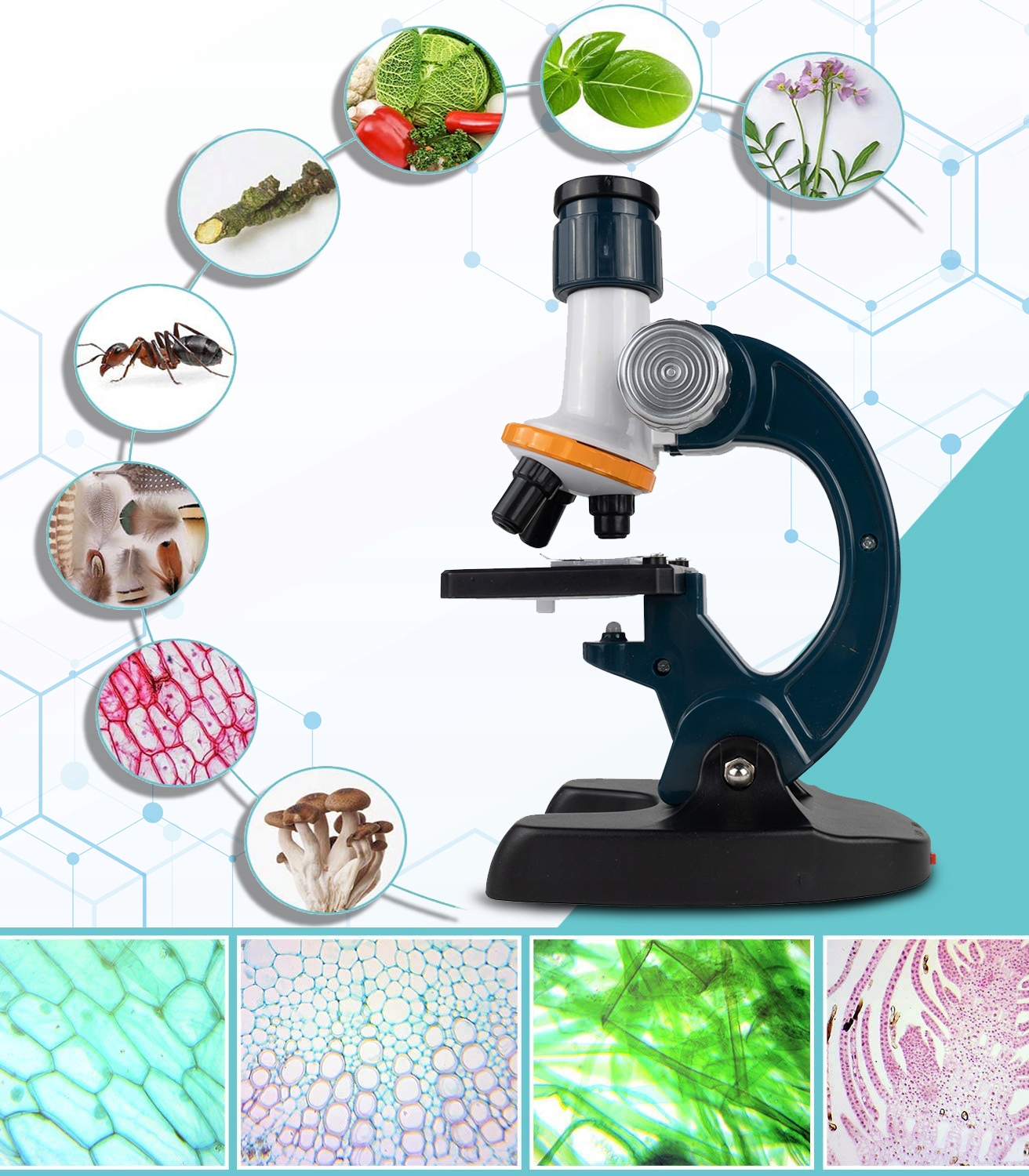 Aflati ce lucruri uimitoare puteti descoperi cu un microscop. Puteti vedea cum arata o frunza, o insecta, un par sau un cristal de zahar marit. In fiecare zi obiectele devin obiecte de studiu si iti dezvaluie microsecretele si imaginile uimitoare, anterior invizibile pentru ochi. Un set educativ cu accesorii pentru un tanar om de stiinta il va introduce pe copil in lumea minunata a microbiologiei, stiintei si naturii.