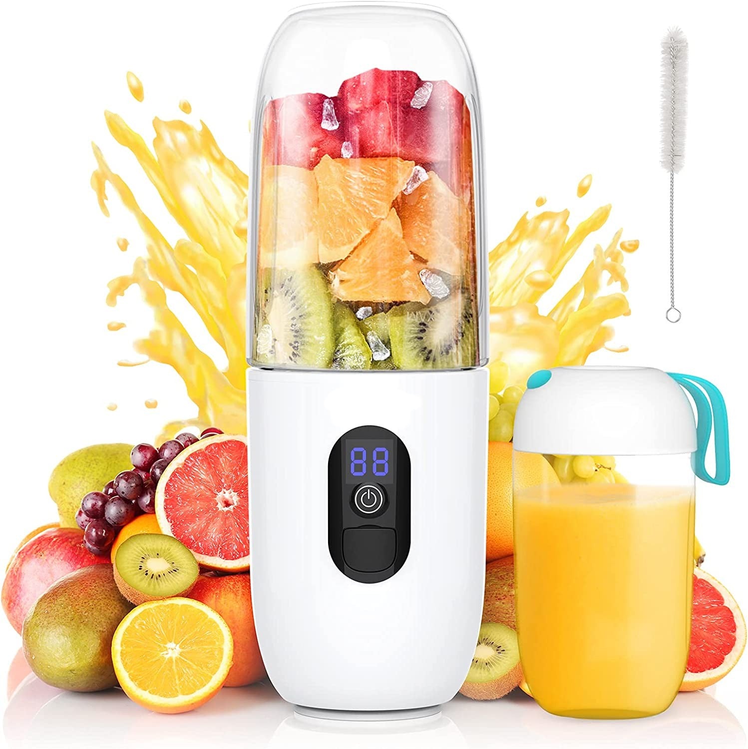 Mini Blender Electric RealMix White IdealStore, Portabil, Incarcare magnetica la orice port USB, 6 Lame din otel inoxidabil, Capacitate 510 ml, Putere 25.000 rpm, Usor de curatat, Afisaj LCD