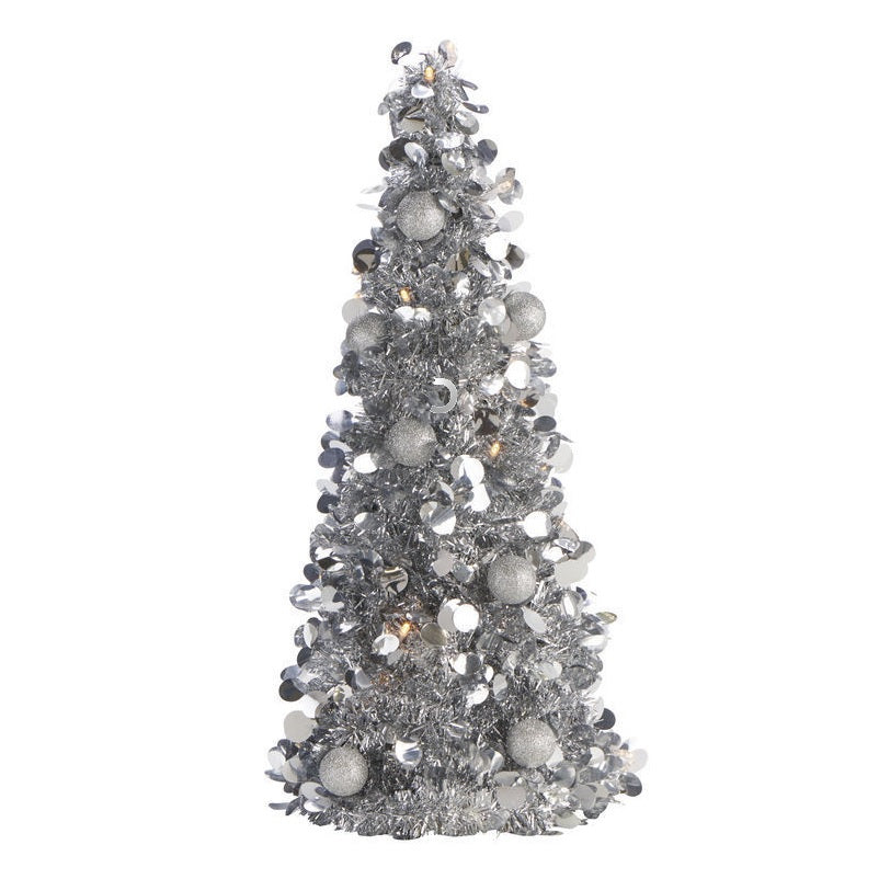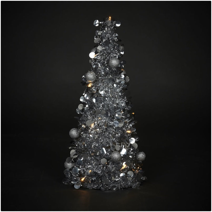 Mini Brad artificial elegant IDL cu Beteala, Inaltime 50 cm , Latime 20cm , Culoare Argintiu , Culoare Led Alb Cald , pentru o ambienta de neuitat in timpul sarbatorilor