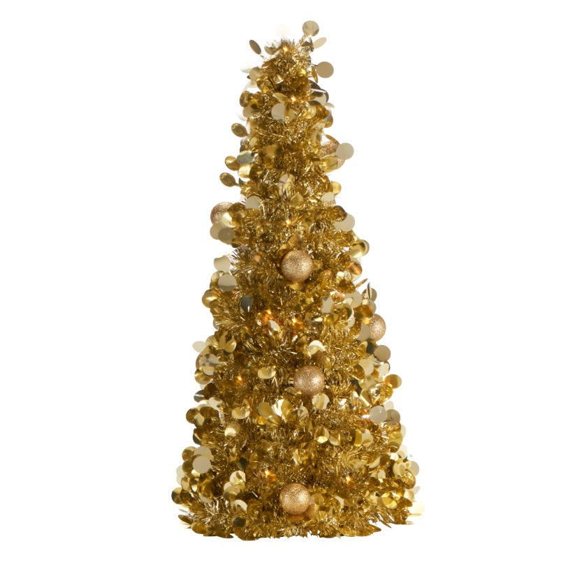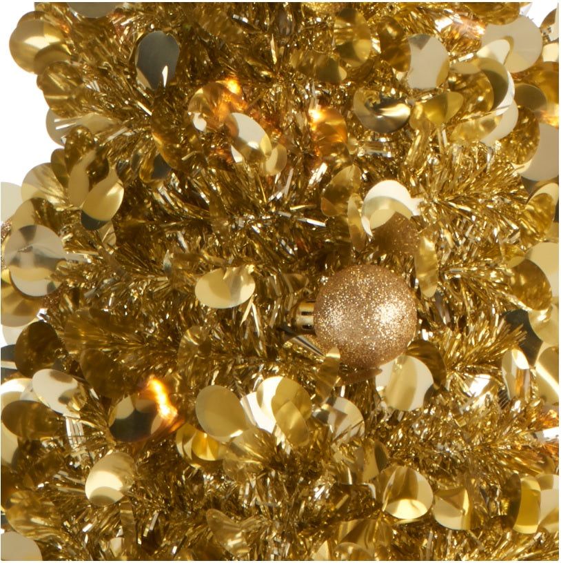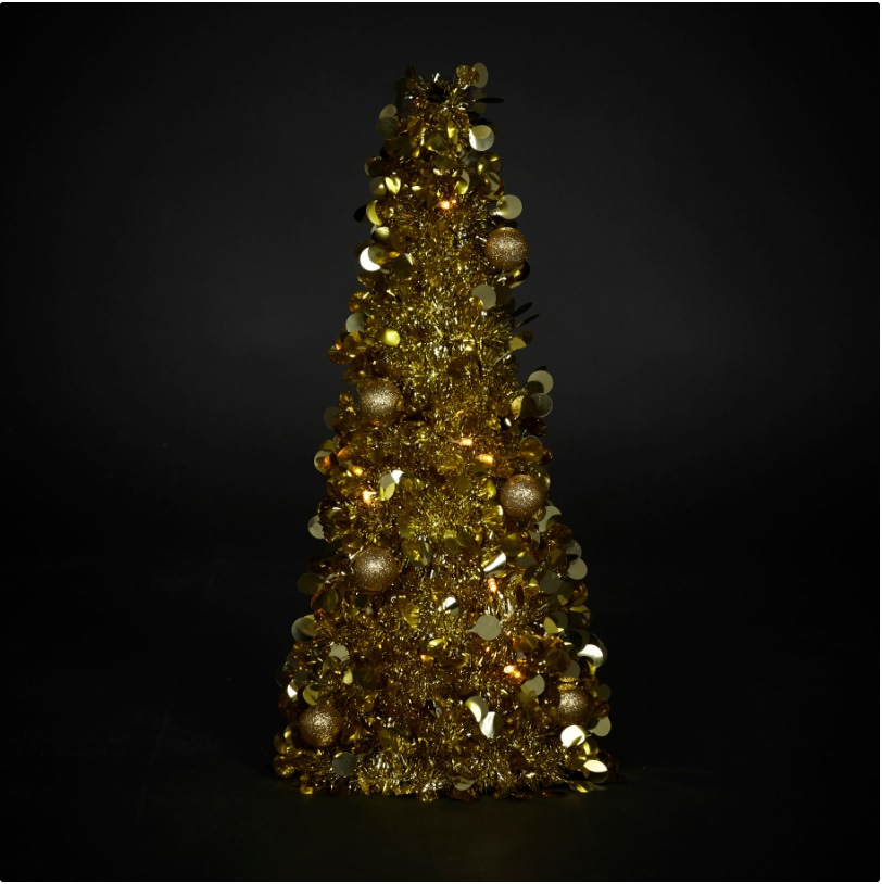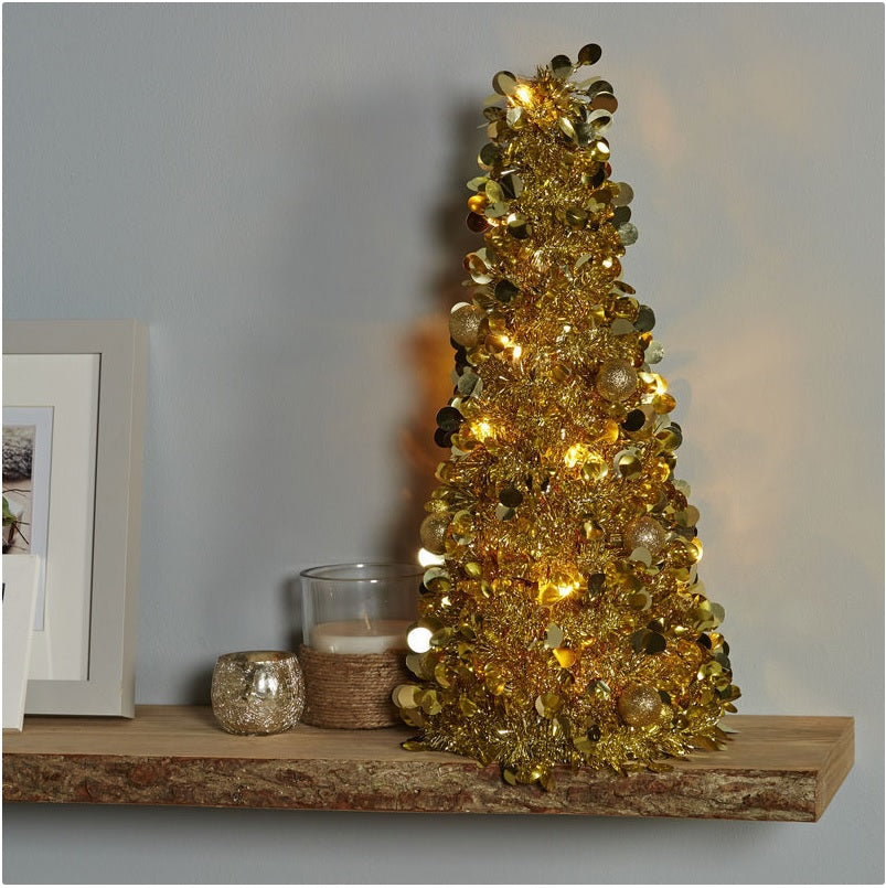 Mini Brad artificial elegant IDL cu Beteala, Inaltime 50 cm , Latime 20cm , Culoare Auriu , Culoare Led Alb Cald , pentru o ambienta de neuitat in timpul sarbatorilor