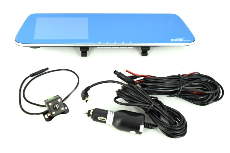 Pachetul include: Oglinda, camera mers inapoi, cablajul conectare, incarcator auto.