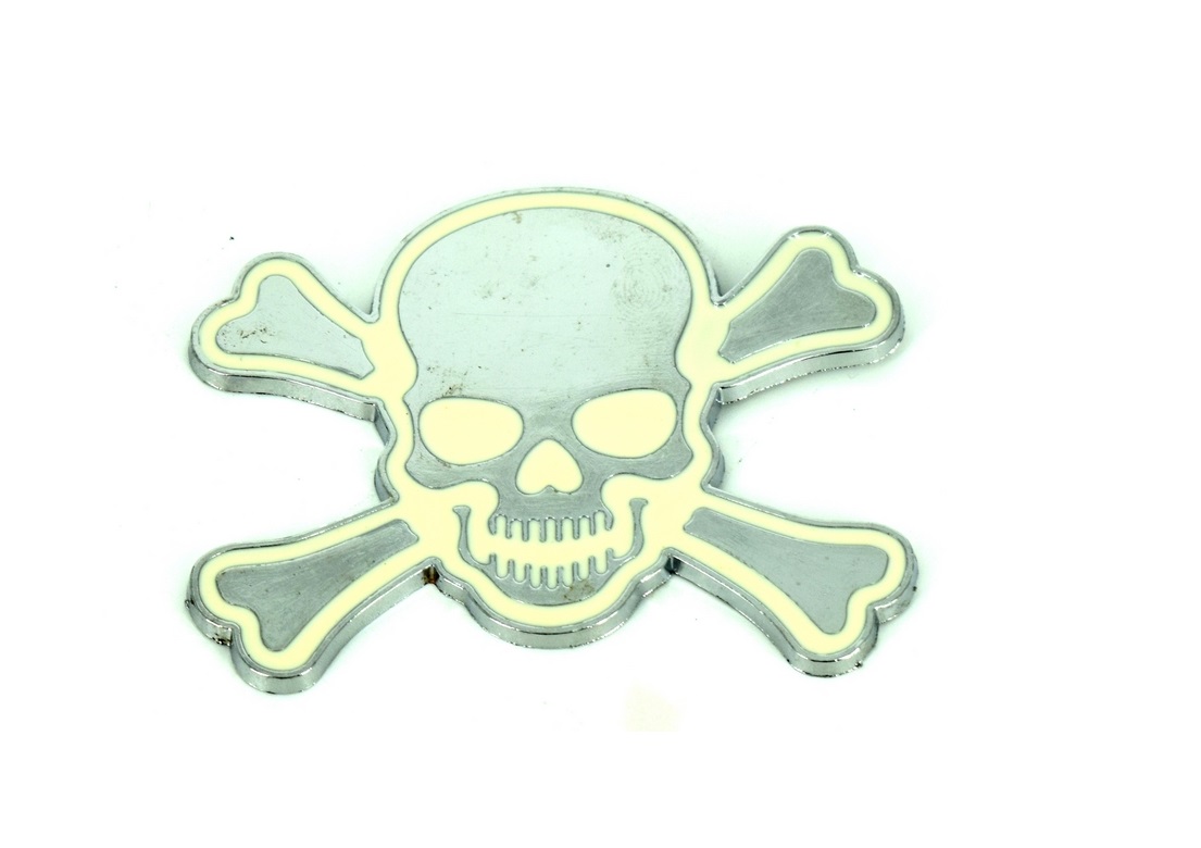 Oranament Auto Tip Cap Mort IDL, Diametru 8 cm, Culoare-Crom, Se lipeste cu banda dublu adeziva