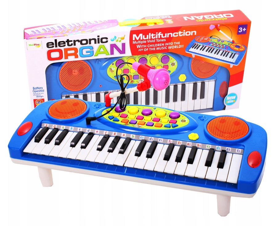 Orga Electronica cu 37 Clape, cu functie de inregistrare si Microfon pentru Copii, Culoare albastru