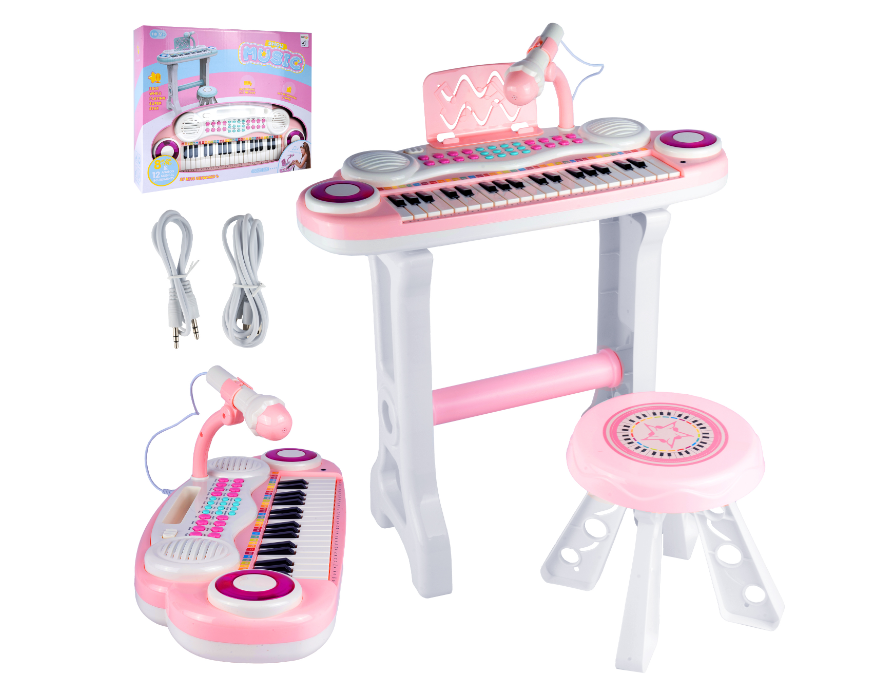 Orga Electronica cu Scaunel idealSTORE, Include 37 de Taste, 8 Ritmuri, 4 Niveluri de Percutie, Microfon si Lumini Karaoke, MP3, Functie de Inregistrare si Redare, Volum Reglabil, Suport Muzical, Cablu USB