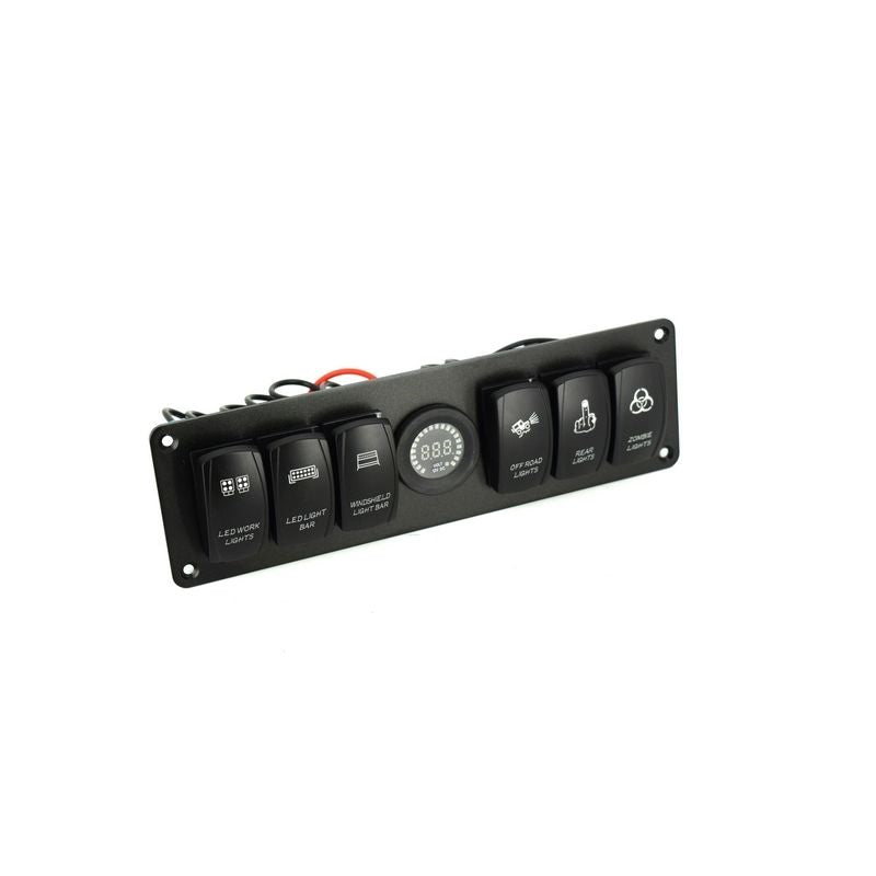 Panou 6 intrerupatoare auto cu diferite functii si voltmetru, VistaCar