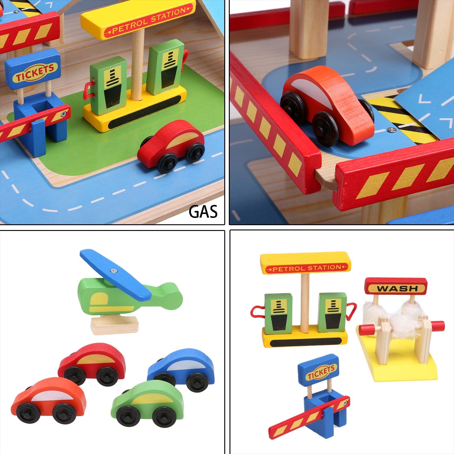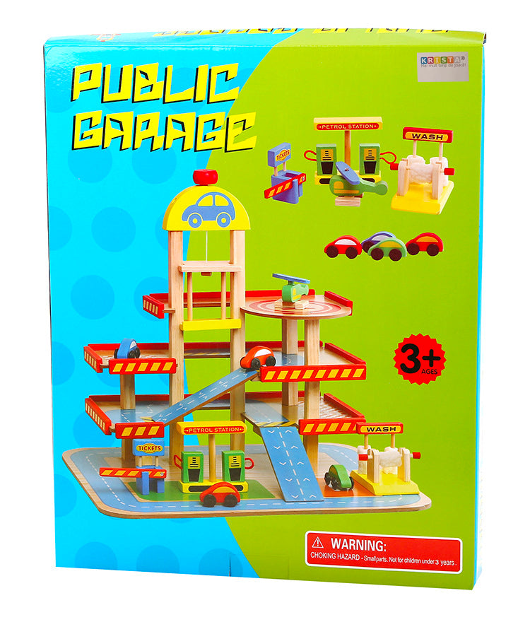 Include 4 masini, 1 elicopter, doua nivele de parcare si circuit, cu heliport, lift, spalatorie, pompa de carburant, bariera etc.