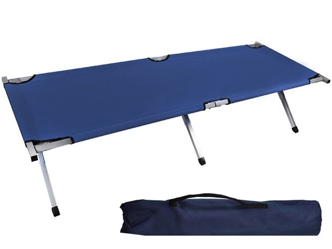 Pat campanie idealStore cu husa de transport, robust, stabil, pliabil, confortabil si usor de transportat, culoare albastru