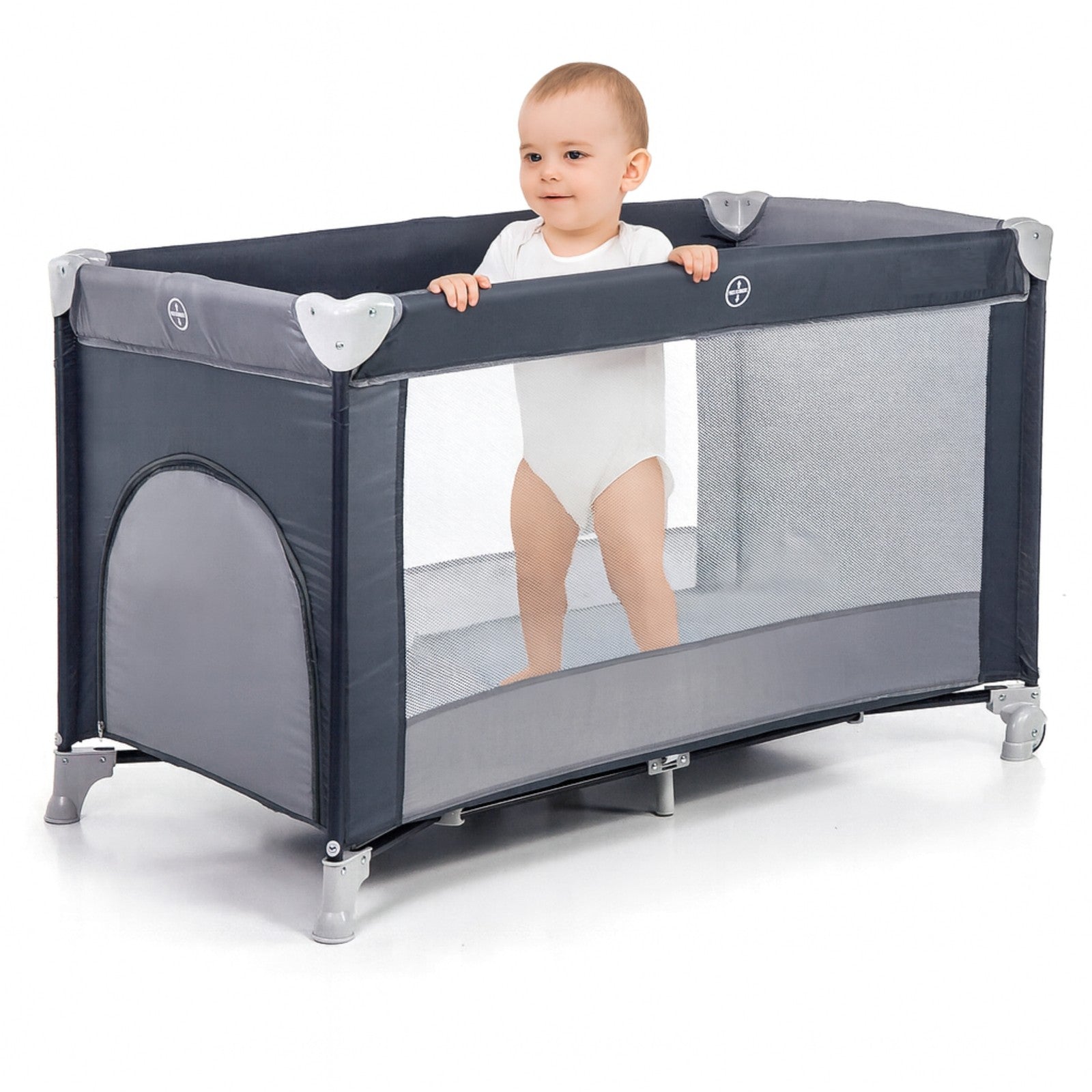 Patut Turistic pliabil Ideal Travel, ideal pentru calatori dar si patut traditional, design solid si elastic, constructie solida in 7 puncte, saltea moale si pliabila, geanta transport inclusa, Gri
