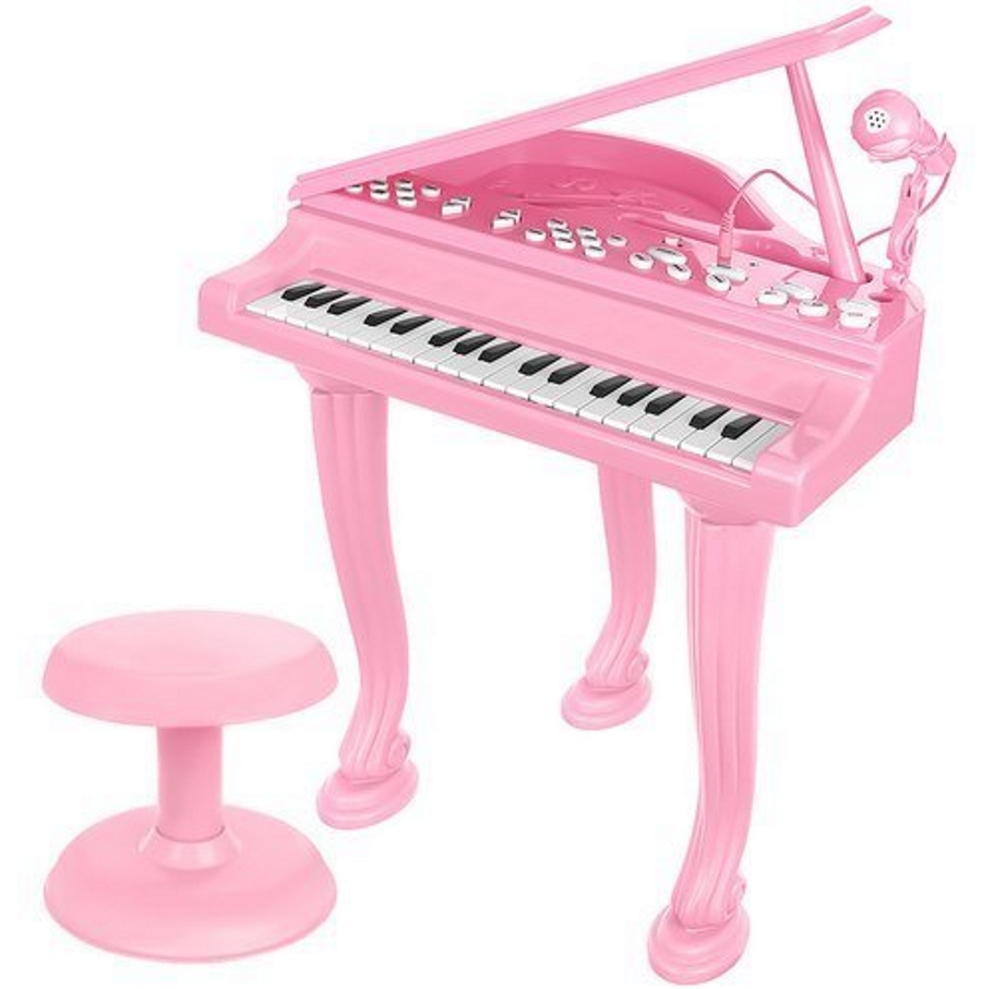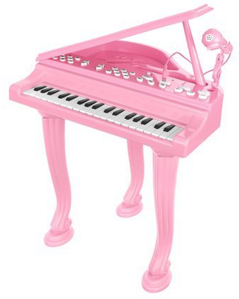 MULTE FUNCTII - pianul roz are multe functii incorporate, inclusiv capacitatea de a inregistra sunete, capacitatea de a conecta telefonul cu propriul fundal, capacitatea de a reda sunetele instrumentelor sau compozitii muzicale intregi. Multitudinea de functii inseamna ca, copilul cu siguranta nu se va plictisi de pian, iar jucaria se va bucura mult timp de interesul sau.