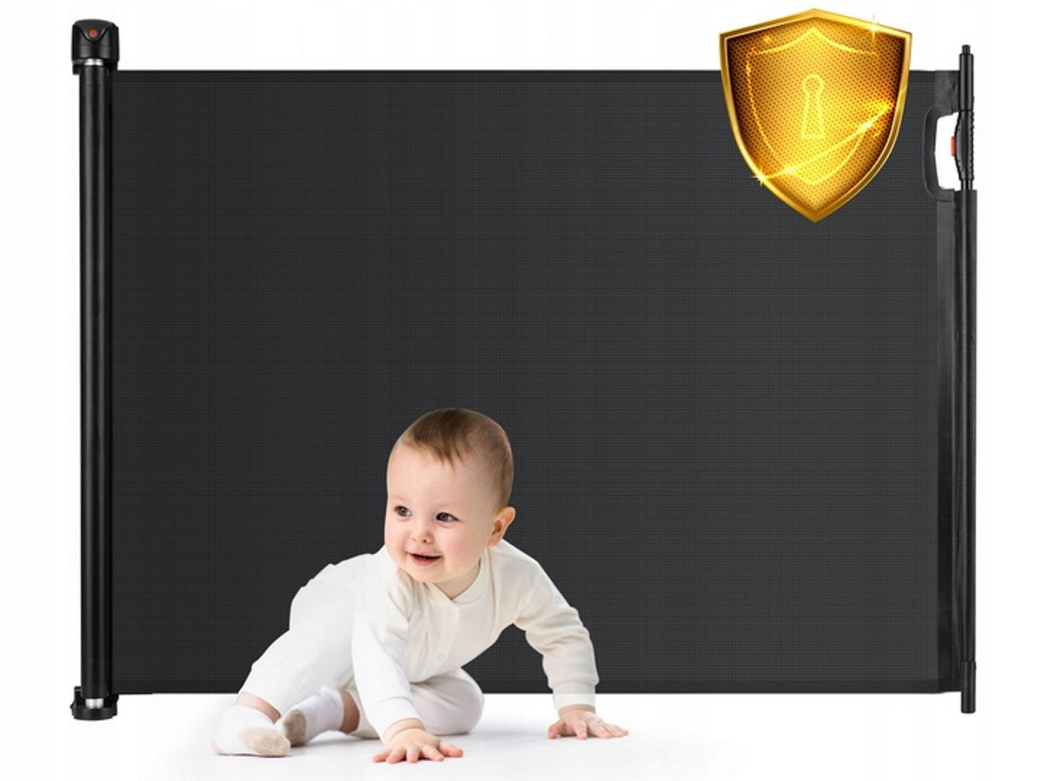 Poarta de Siguranta Rulanta idealStore Barrier Children, dImensiuni 140 cm x 92.5 cm, Latime ajustabila, fara Prag, Silentioasa, Utilizare Multipla, Material rezistent la Murdarie, Culoare Negru