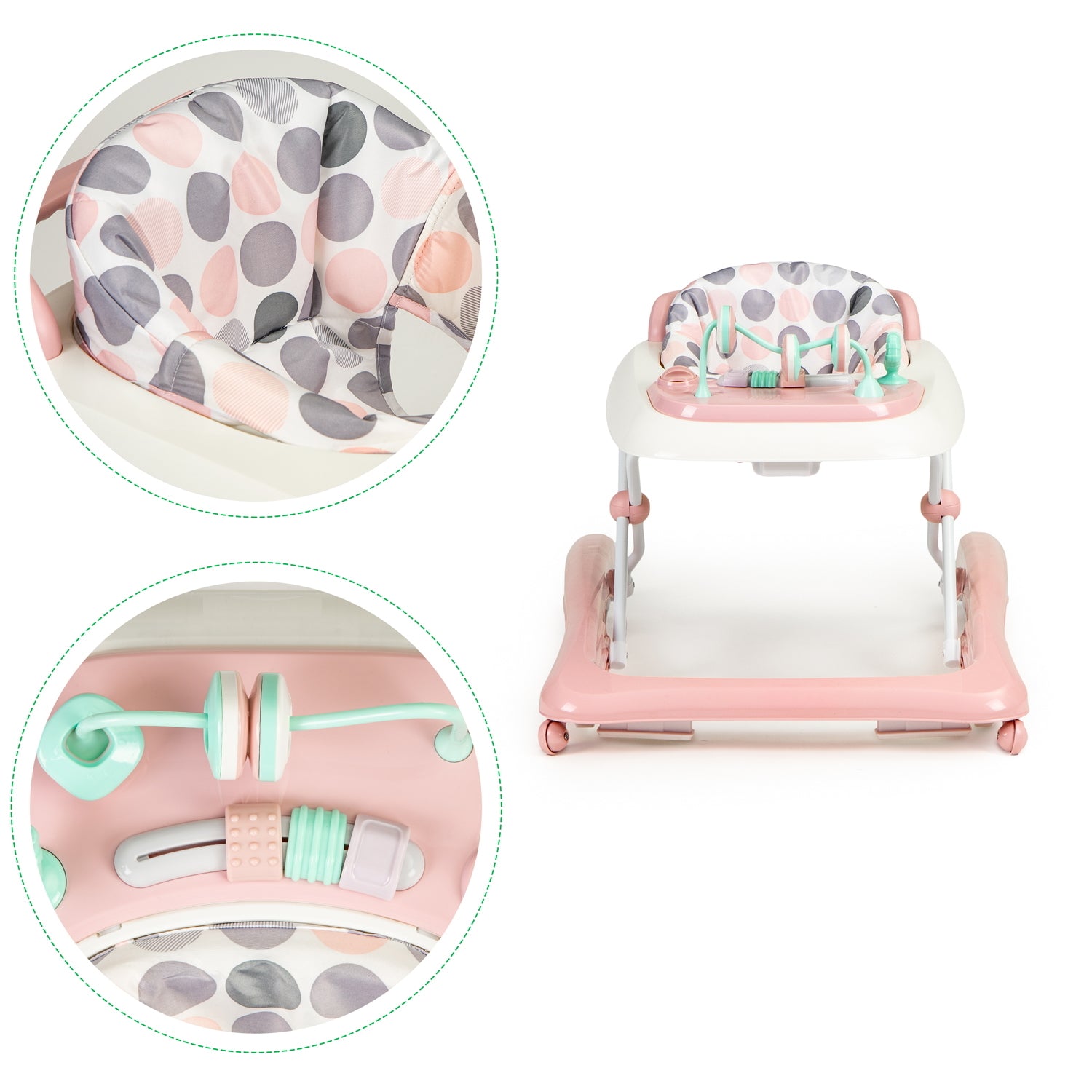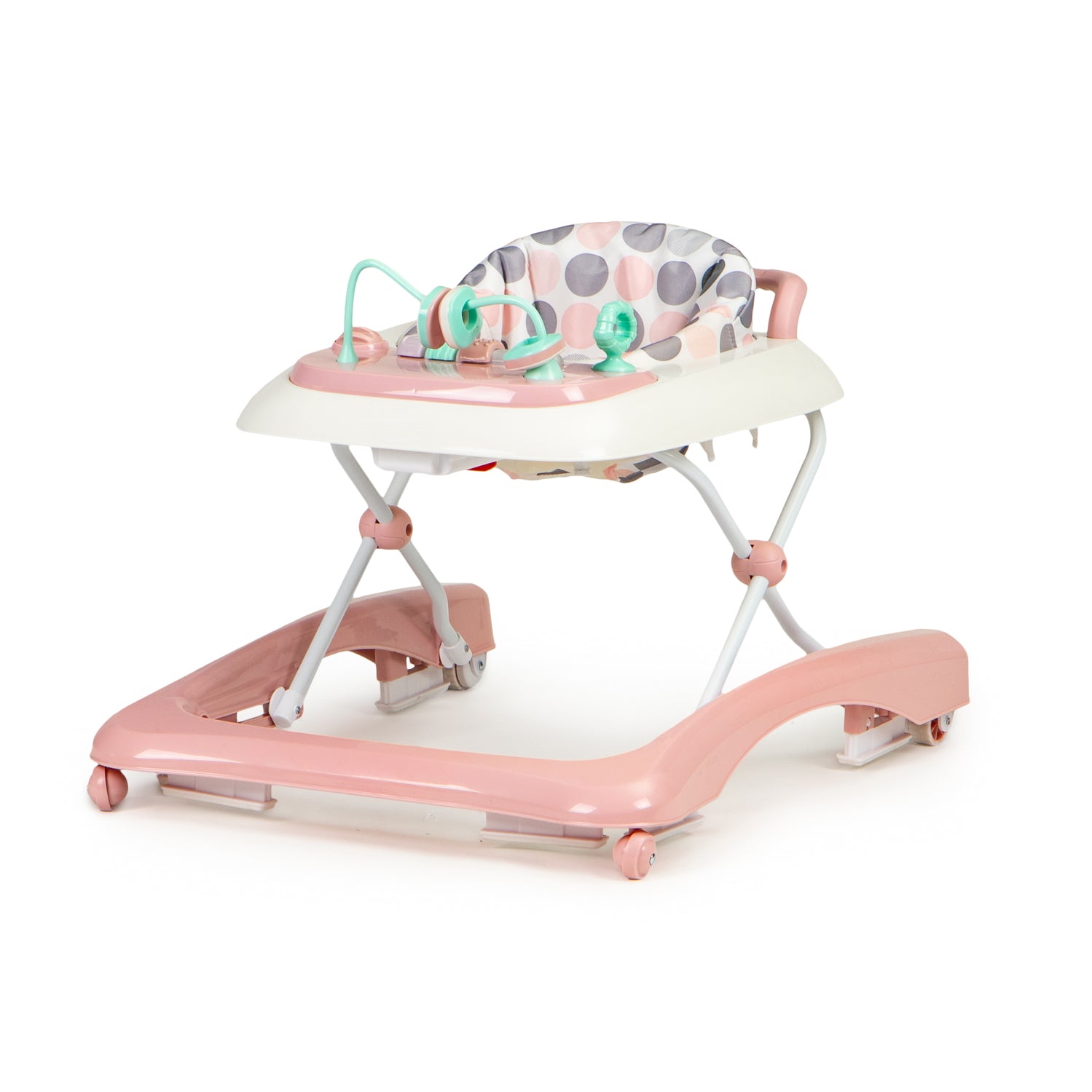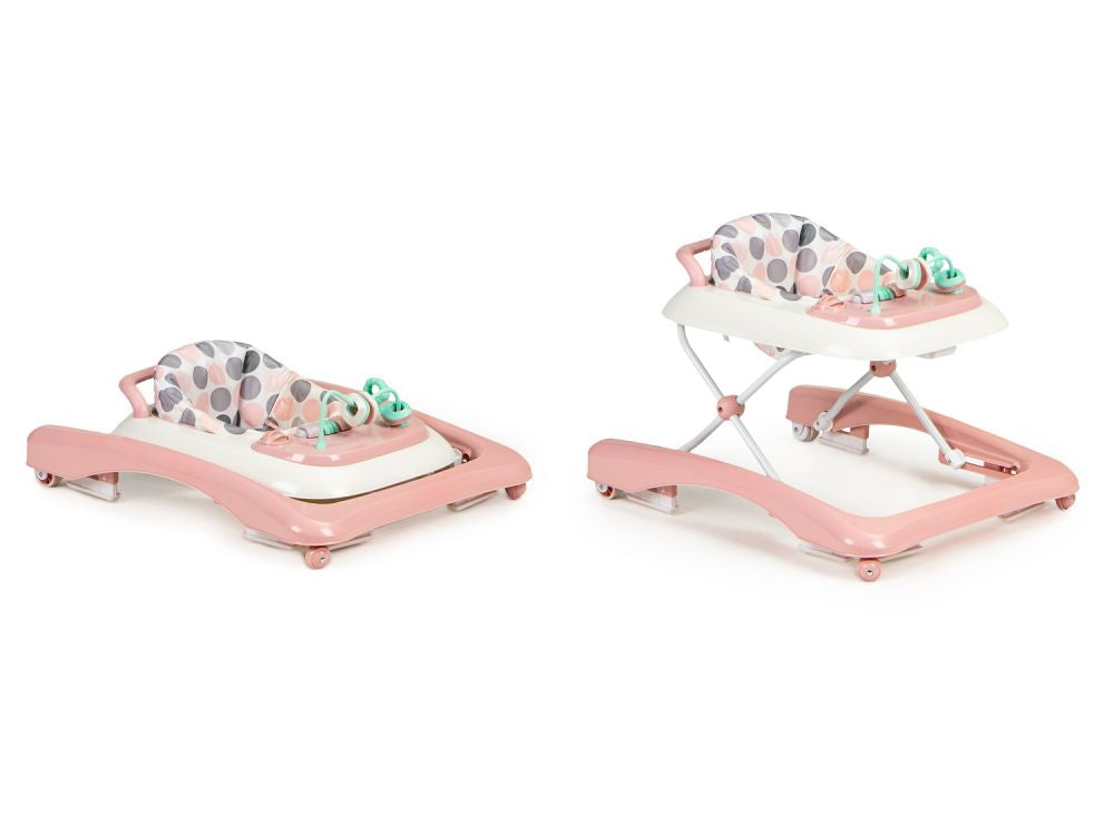 Premergator 2in1 idealStore ProfyWalker, 3 Trepte de Inaltime, Pliabil, Panou Interactiv, Roti Silicon, Scaun Moale, Siguranta Anticadere, Roz