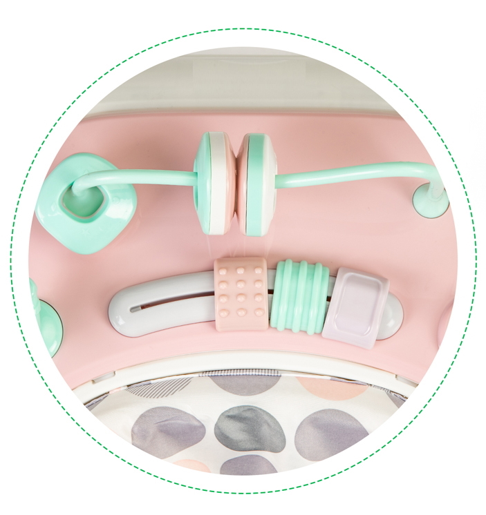 Include o masa functionala cu jucarii - un labirint cu zornaituri pentru dezvoltarea abilitatilor motorii