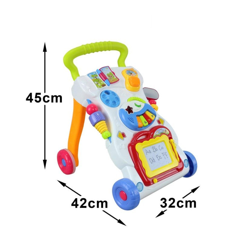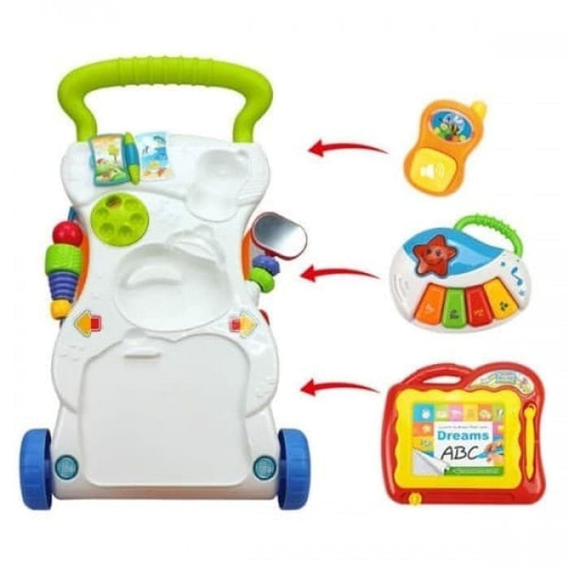 Premergator cu maner, cu forme si design atractiv pentru copil. Are melodii, sunete si lumini, dar si jucarii detasabile(pian, tablita scris si telefon) ceea ce il face un centru de joaca desavarsit, ajutand la dezvoltarea imaginatiei si creativitatii copilului.