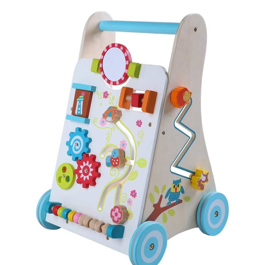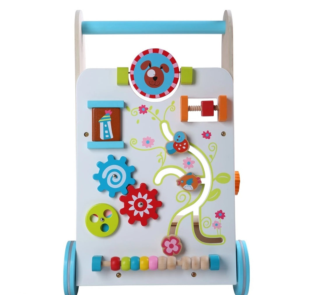 Premergator din LEMN cu Centru de Activitati IDL, FUNNY Figurines, Modeleaza armonios Dezvoltarea COGNITIVA a micutului, Fiecare element are o functionalitate si un caracter diferit ce ii ajuta sa descopere lumea din jurul lor, Albastru