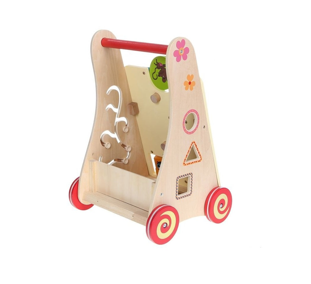 Premergator din LEMN cu Centru de Activitati IDL, FUNNY Figurines, Modeleaza armonios Dezvoltarea COGNITIVA a micutului, Fiecare element are o functionalitate si un caracter diferit ce ii ajuta sa descopere lumea din jurul lor, Rosu