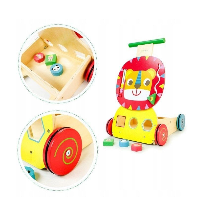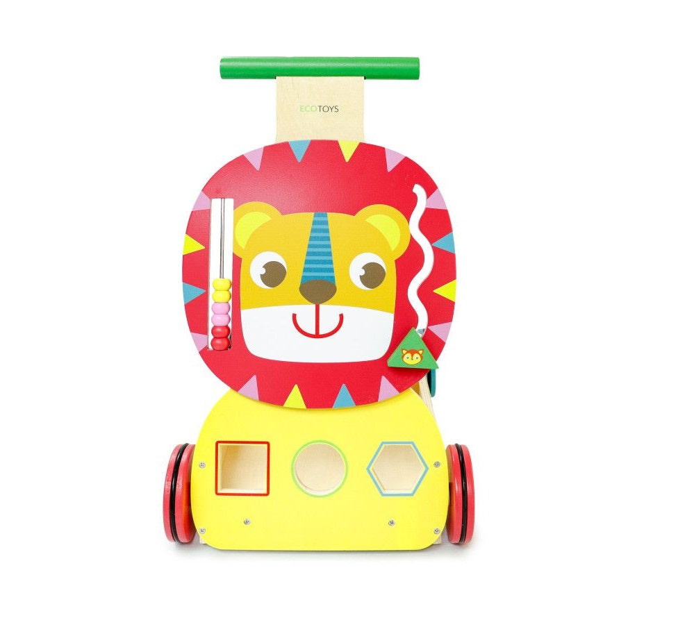 Premergator din lemn cu Centru de activitati, King of the Jungle, Dimensiuni 30.5 x 33 x 47.5 cm, Ajuta la mentinerea echilibrului, antreneaza abilitatile motorii