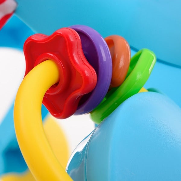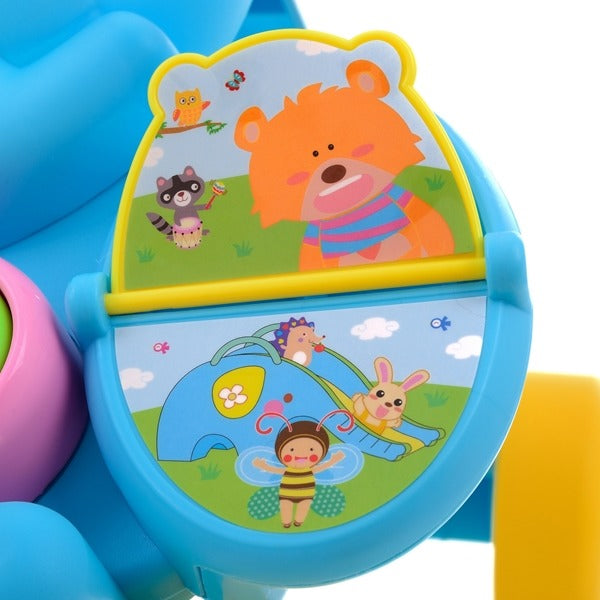 Jucaria dezvolta capacitatile motorii, coordonarea ochi-mana si mersul la bebelusii mai mari de 6 luni, si va fi jucaria preferata a copilului pana la 2 ani jumatate.