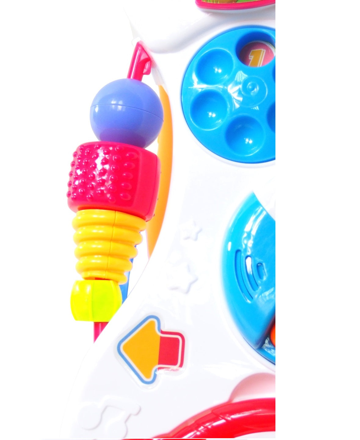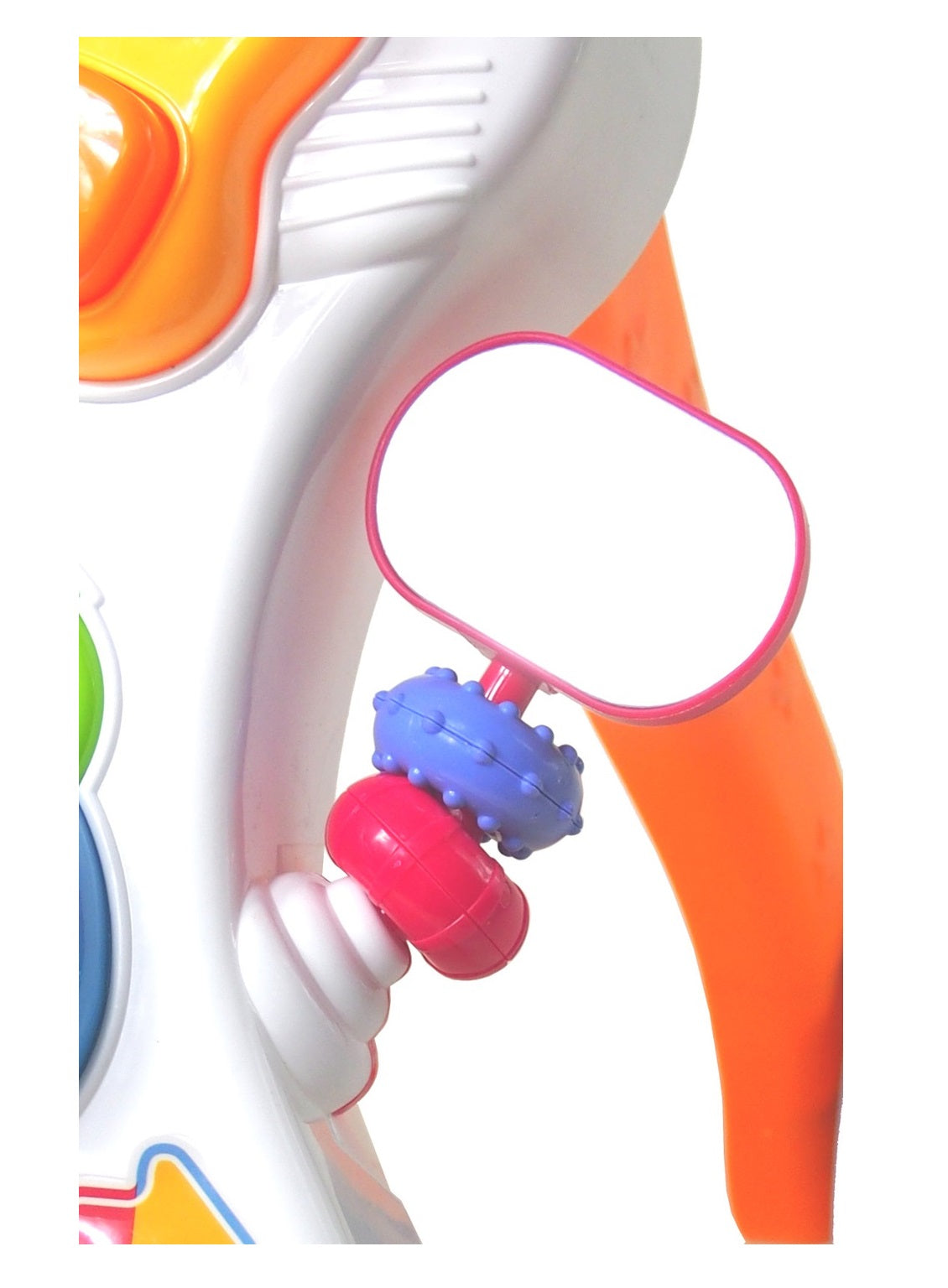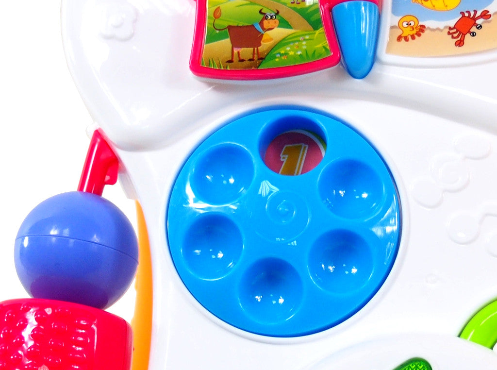 Centrul de activitati incorporat dar detasabil include o multime de activitati din care copiii vor invata literele, formele geometrice, culorile, fructele, animalele, sa raspunda la telefon.