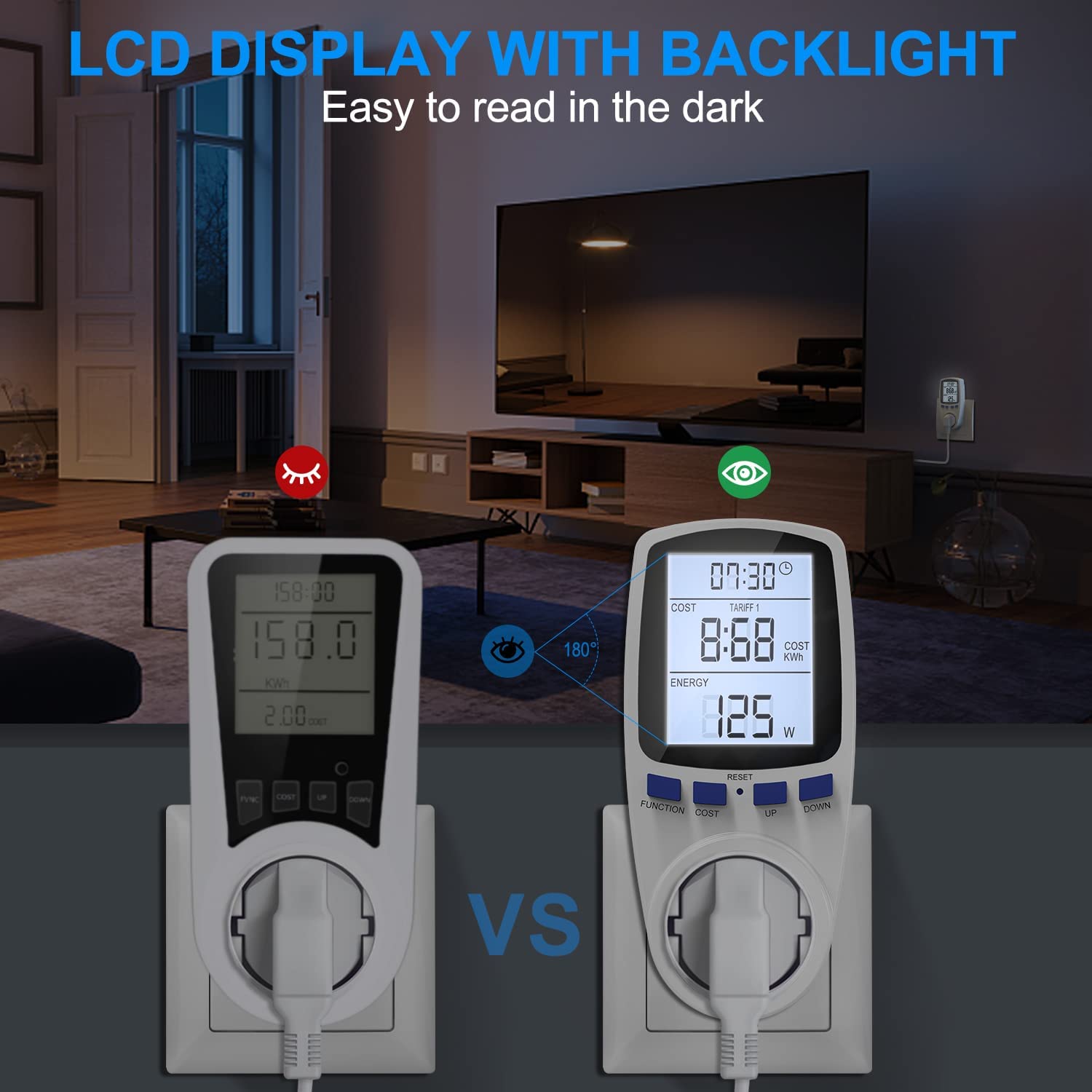 Putere de siguranta: avertismentul de suprasarcina este afisat pe ecranul LCD: Cand curentul depaseste 16A sau puterea depaseste 3680W, pictograma „SUPRAINCARCARE” va clipi pe ecranul LCD pentru a avertiza utilizatorul si a intrerupe automat sursa de alimentare pentru a asigura siguranta gospodariei. electricitate Daca este mai mica de 1,0 W, va fi considerat consumul de energie al masinii si timpul nu va fi acumulat. Priza multifunctionala: monitorizare putere (w), energie (kwh), tensiune (V), amperaj (A), factor de putere, cost, putere minima si maxima, foarte potrivita pentru monitorizarea consumului de energie al aparatelor de uz casnic pentru a maximiza economiile de energie . LCD cu iluminare din spate: monitorul de putere are un afisaj LCD mare cu iluminare din spate, usor de citit si de inregistrat date, mai ales in intuneric, astfel incat sa puteti intelege clar datele. Monitor de putere cu plastic ABS, material sigur si ecologic, Calculati cu usurinta consumul de energie al aparatelor, Potrivit pentru multe aparate electrice, lumini de Craciun, aparat de facut paine, aparat de cafea, computer, console de jocuri, imprimante, TV, sistem hi-fi, DVD , cuptor, etc. Functia de retinere a datelor: Cu functia de retinere a datelor din memorie, puteti deconecta dispozitivul de la contorul de electricitate sau puteti deconecta contorul de electricitate de la priza. Ultimele date vor fi salvate, iar contorul poate fi mutat si afisat fara a pierde date. Specificatie: Tensiune de functionare: 230 vac Afisare frecventa: 50HZ. Curent de functionare: max 16A Gama larga de tensiune: 230 V - 250 Gama de afisare a tensiunii: 0 ~ 9999 V Afisare curent (amperi): 0,0A~16,0A