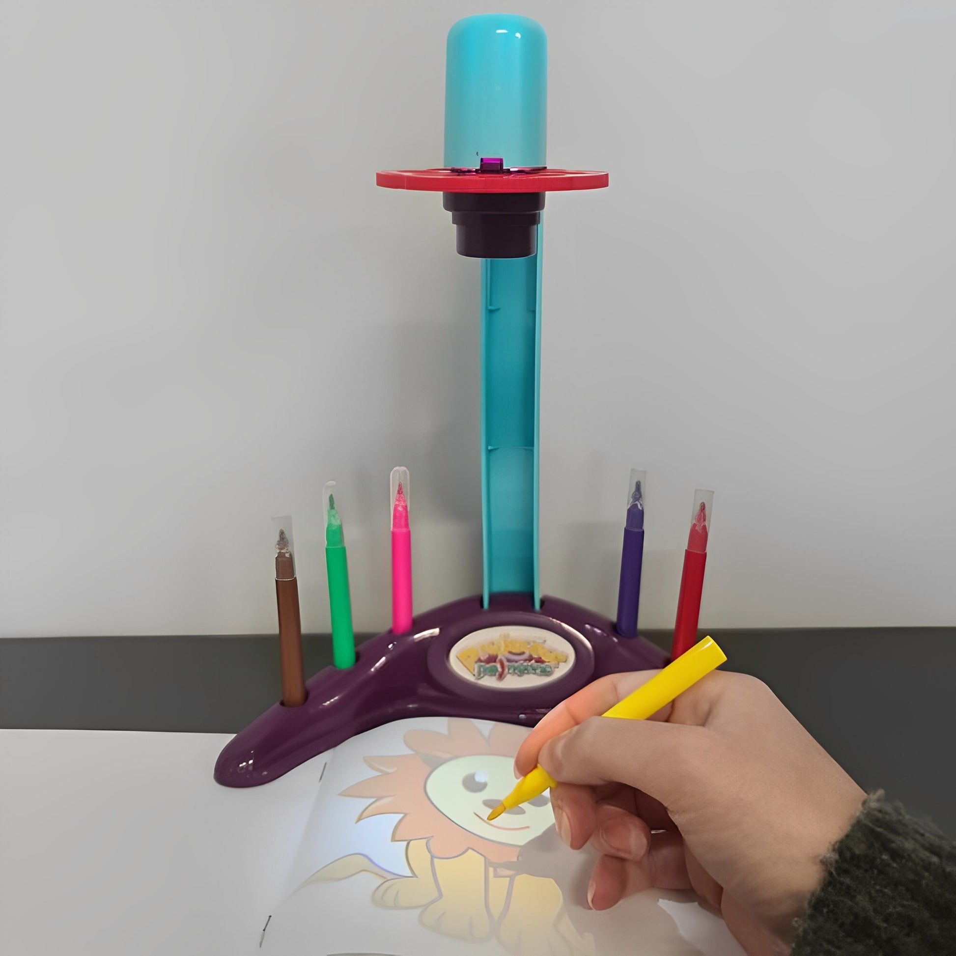 Proiector Educativ pentru Desen Drawing Book idealSTORE Include 24 de Imagini, 6 Markere, 3 Dispozitive pentru Proiector, Tampon de Pictura, Dezvolta Abilitati Manuale
